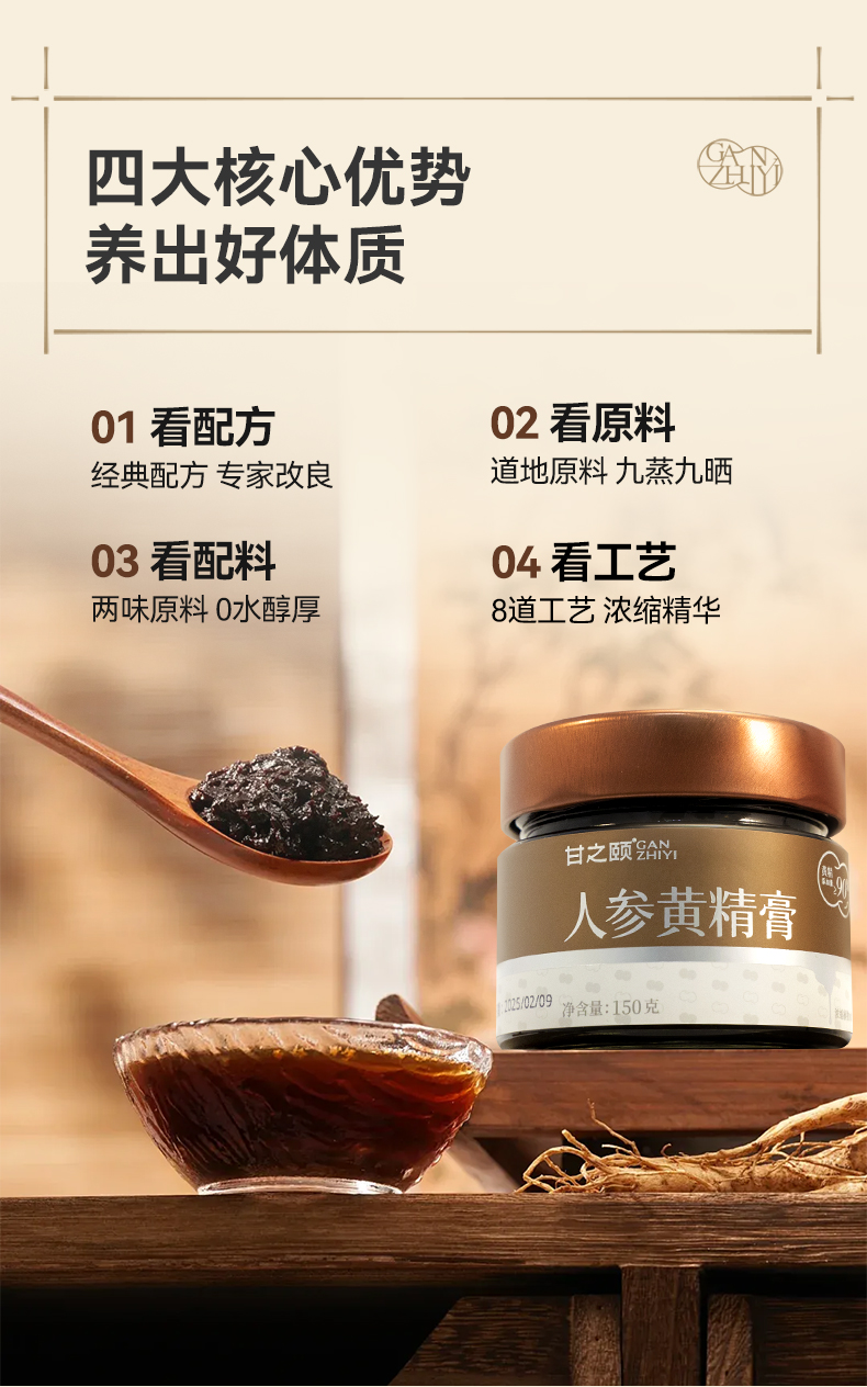甘之颐 人参黄精膏 150g/瓶 正宗官方旗舰店养生膏