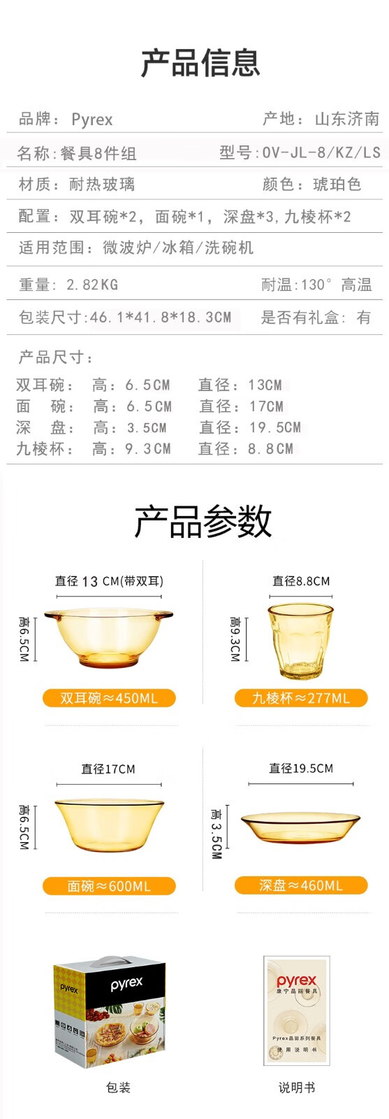 康宁 Pyrex晶丽系列餐具8件组