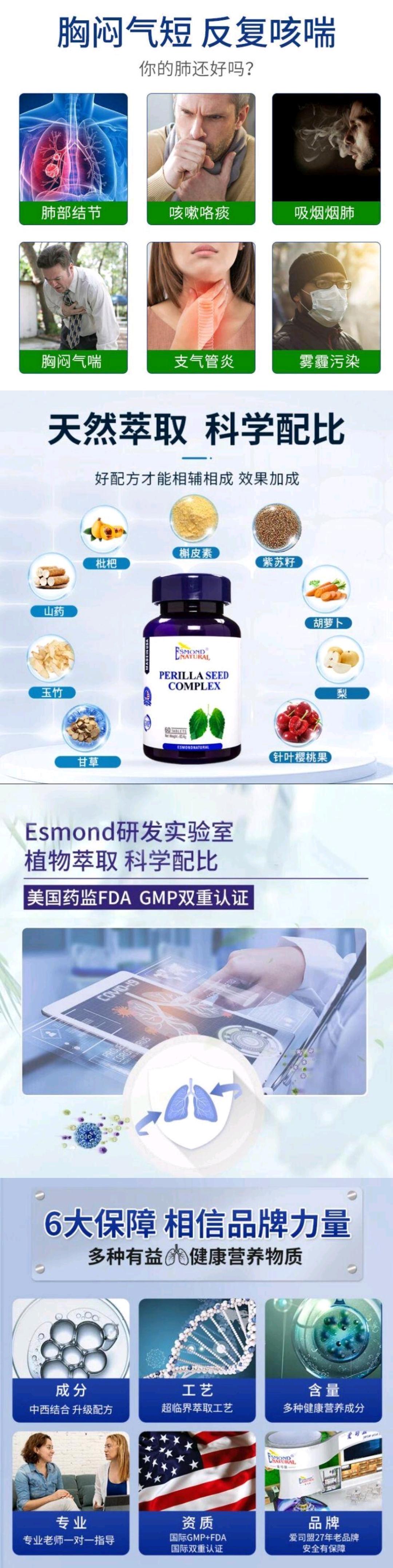 ESMOND 爱司盟 紫苏籽肺部保护复合片 60片/瓶