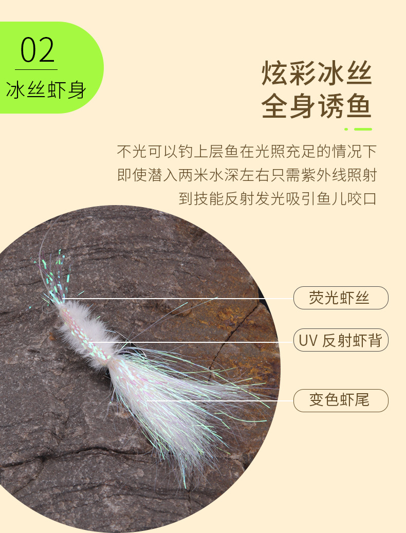 银甲冰丝虾路亚假饵套装幻彩夜光虾微物飞蝇翘嘴青稍白条绑好路亚