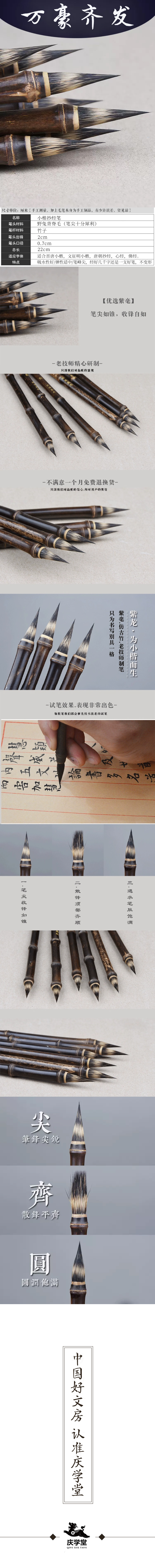 【庆学堂】虚中紫毫毛笔 宋徽宗瘦金体专用 初学者书法字帖临摹硬毫笔 小楷/瘦金体