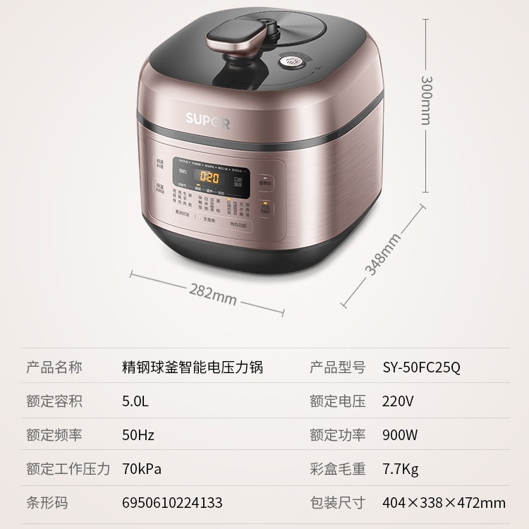苏泊尔SY-50FC25Q新款电压力锅5L升家用智能双胆高压锅高压饭煲