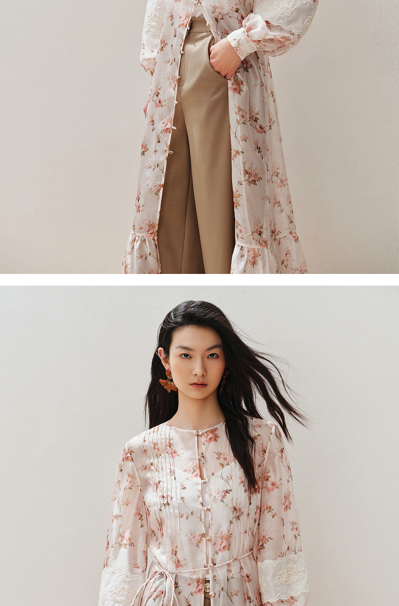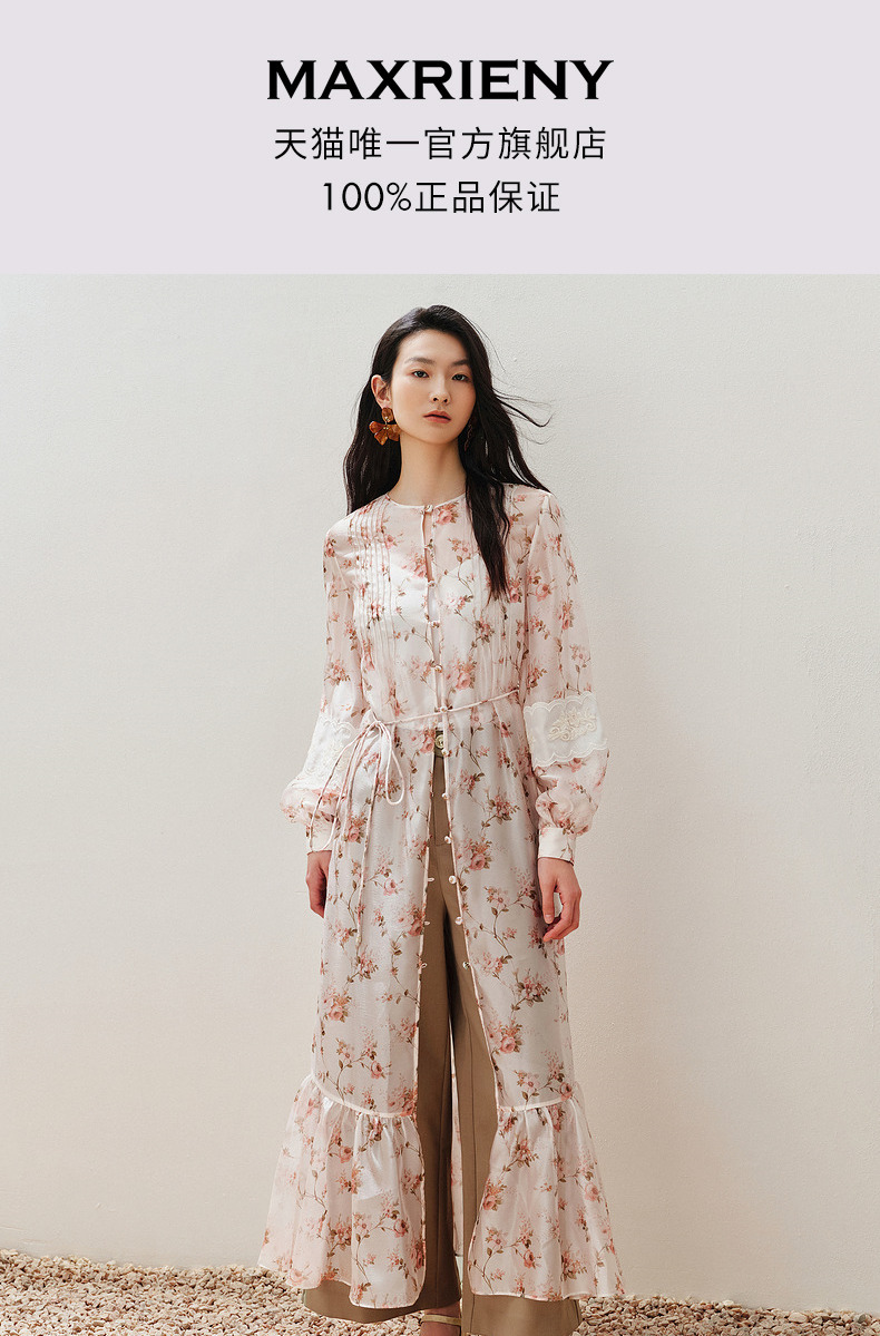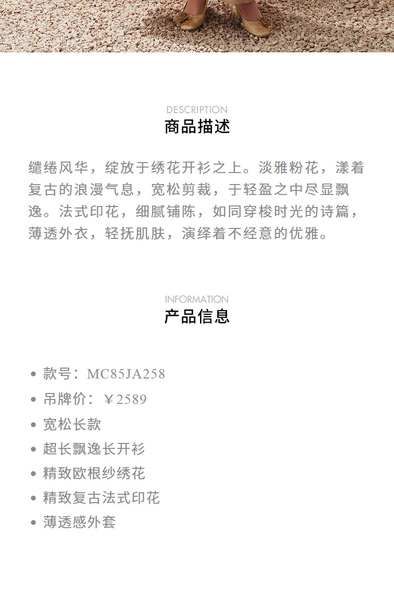玛克门店发货:MAXRIENY浪漫复古绣花外套宽松中长款(货号:MC85JA258)