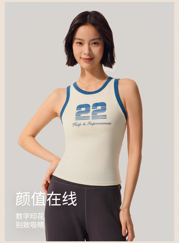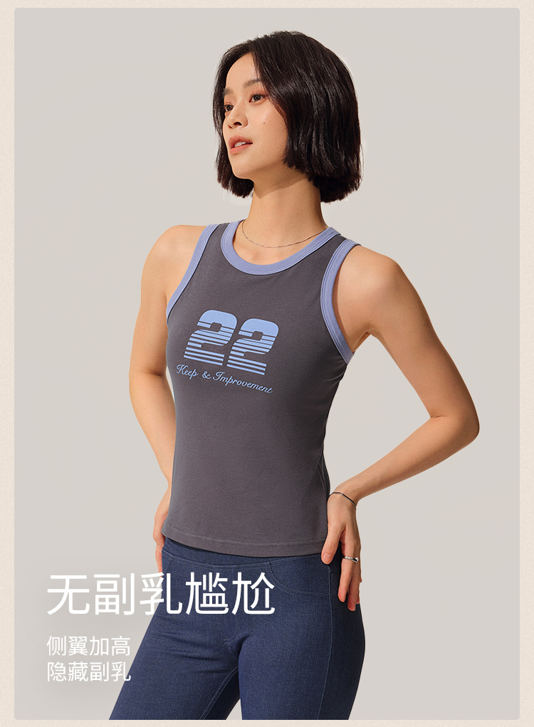 【SW速惟】22号美式复古自带杯垫撞色运动背心 8165