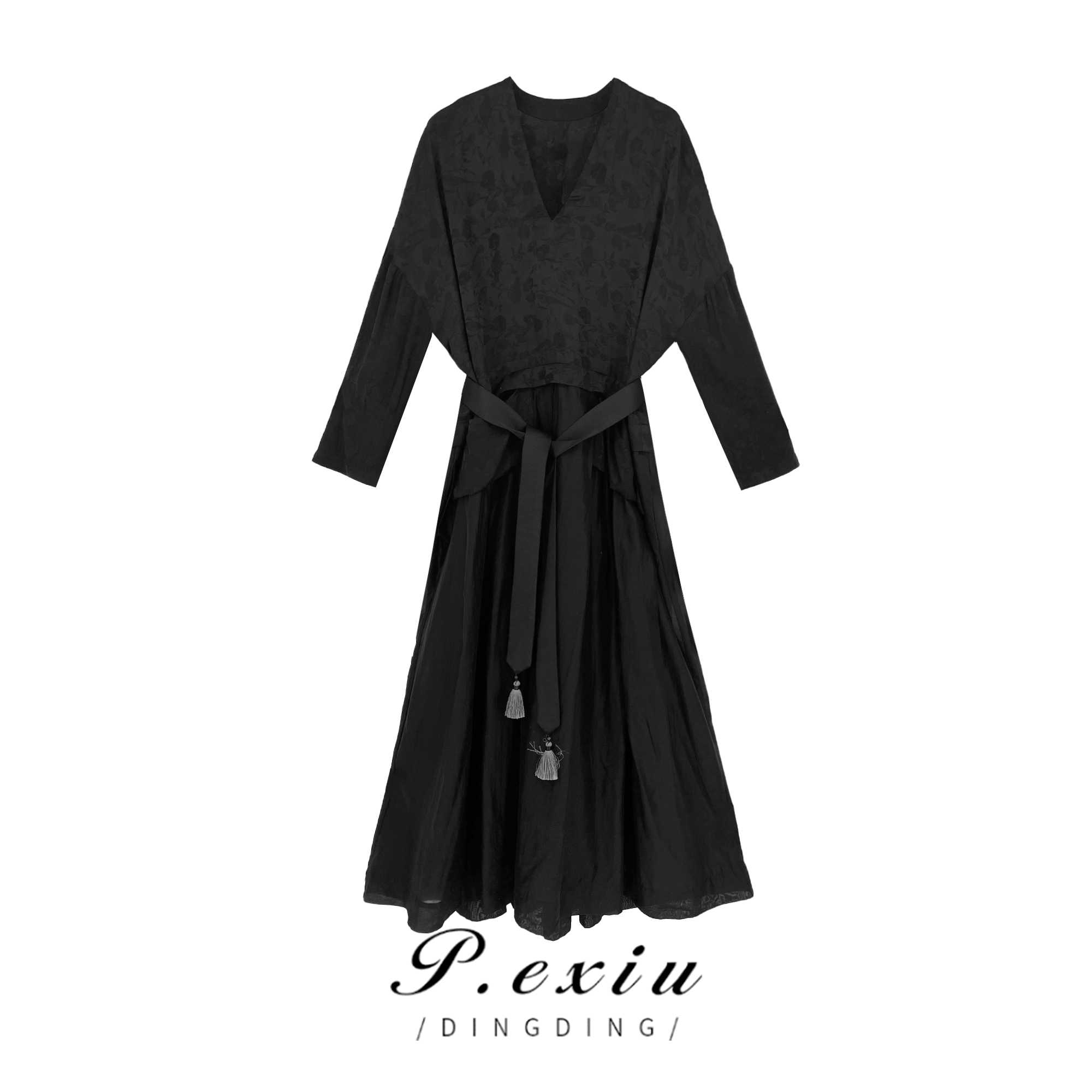 04-6潘依绣丁丁宠粉【夜晚繁星】法式复古气质修身显瘦长袖连衣裙 W-61227