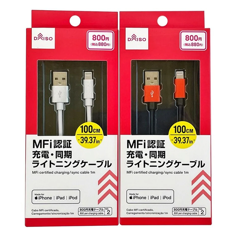 日本 DAISO大創百貨 苹果MFi认证 USB转Lightning数据线 1米 2512CD