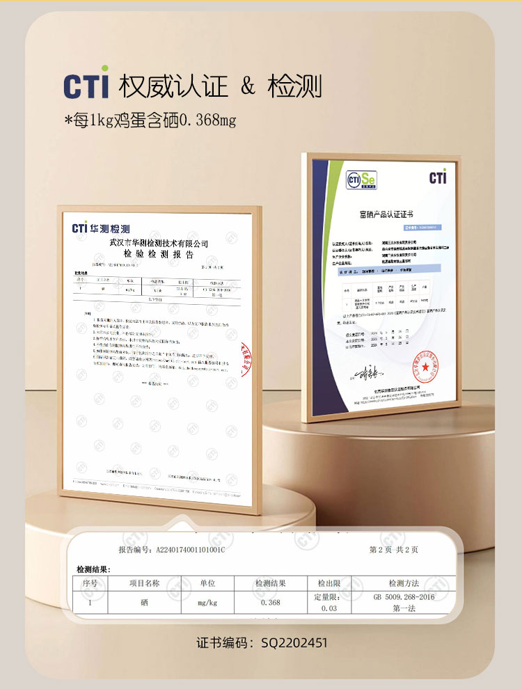 富硒鸡蛋含的硒元素,是普通鸡蛋、包括土鸡蛋的40-60倍,胆固醇低1倍多。