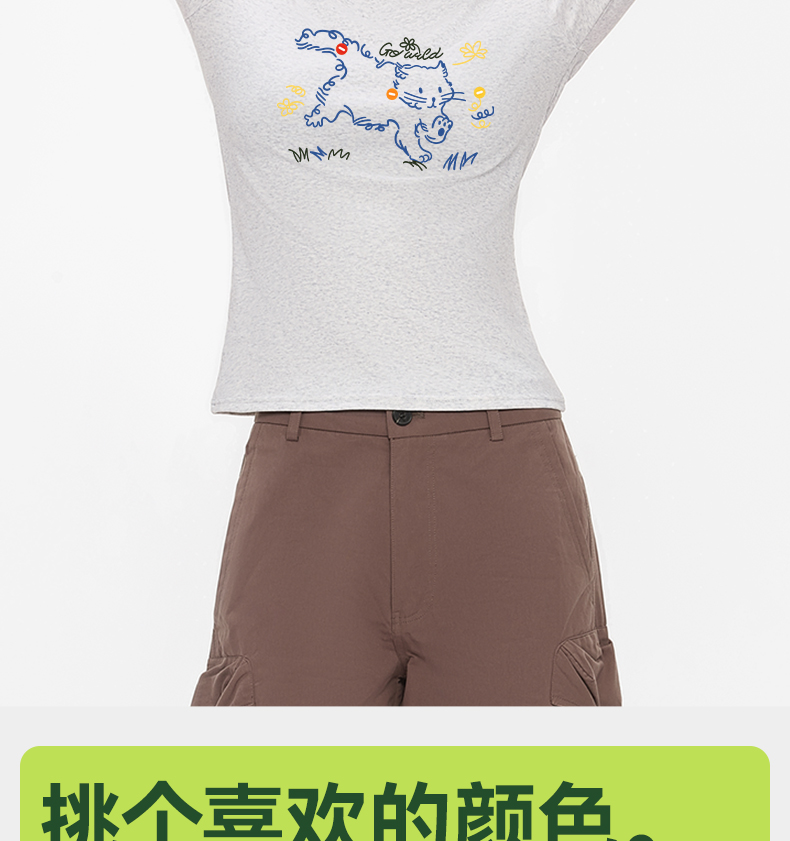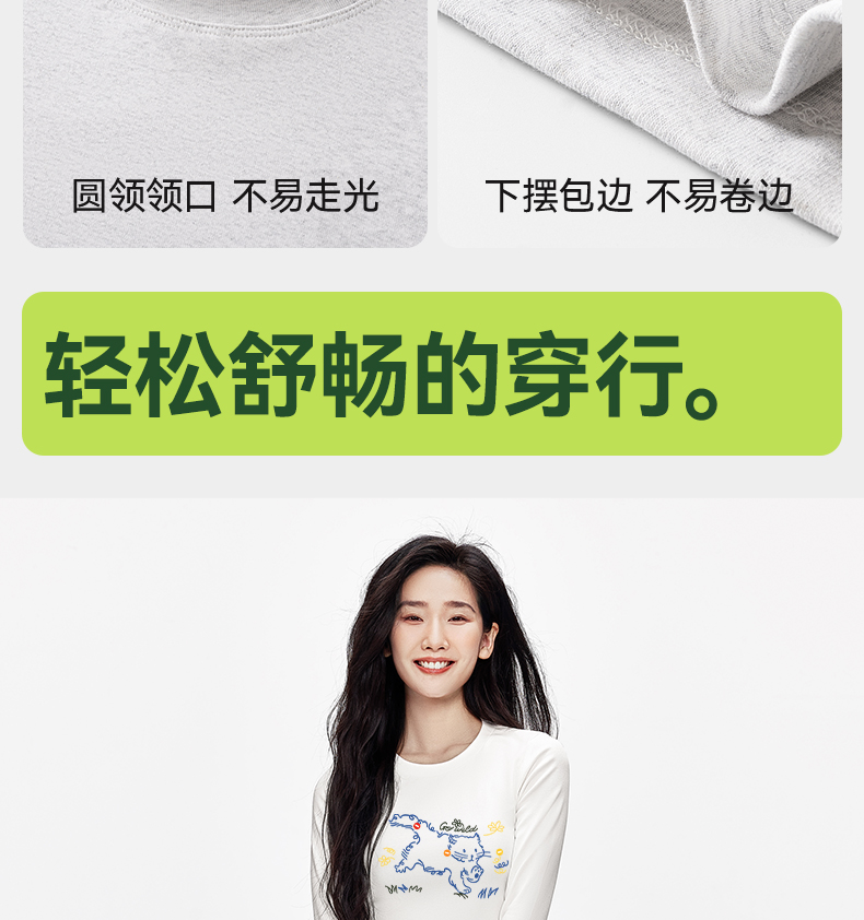 「棉的美学」秋季圆领掐腰T恤女印花休闲显瘦百搭长袖柔软舒适上衣