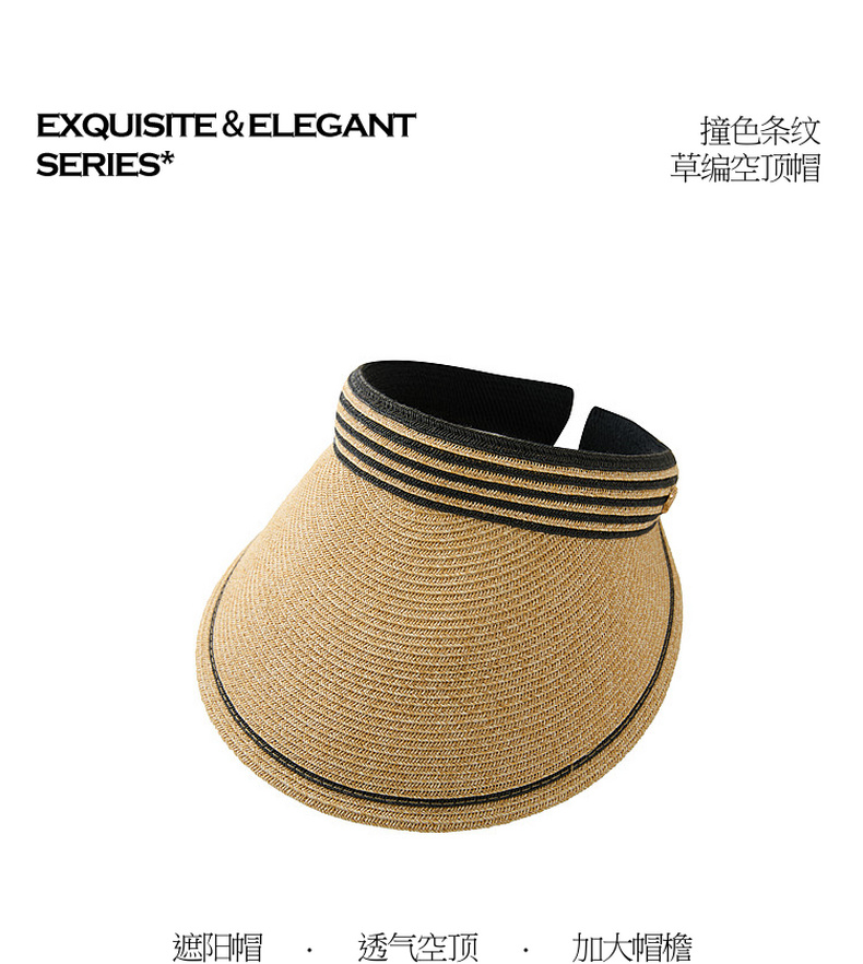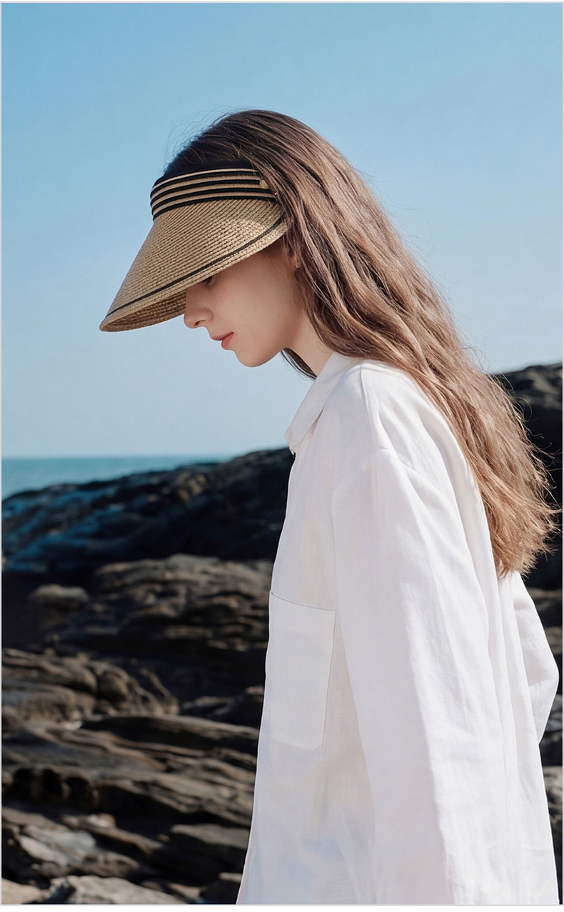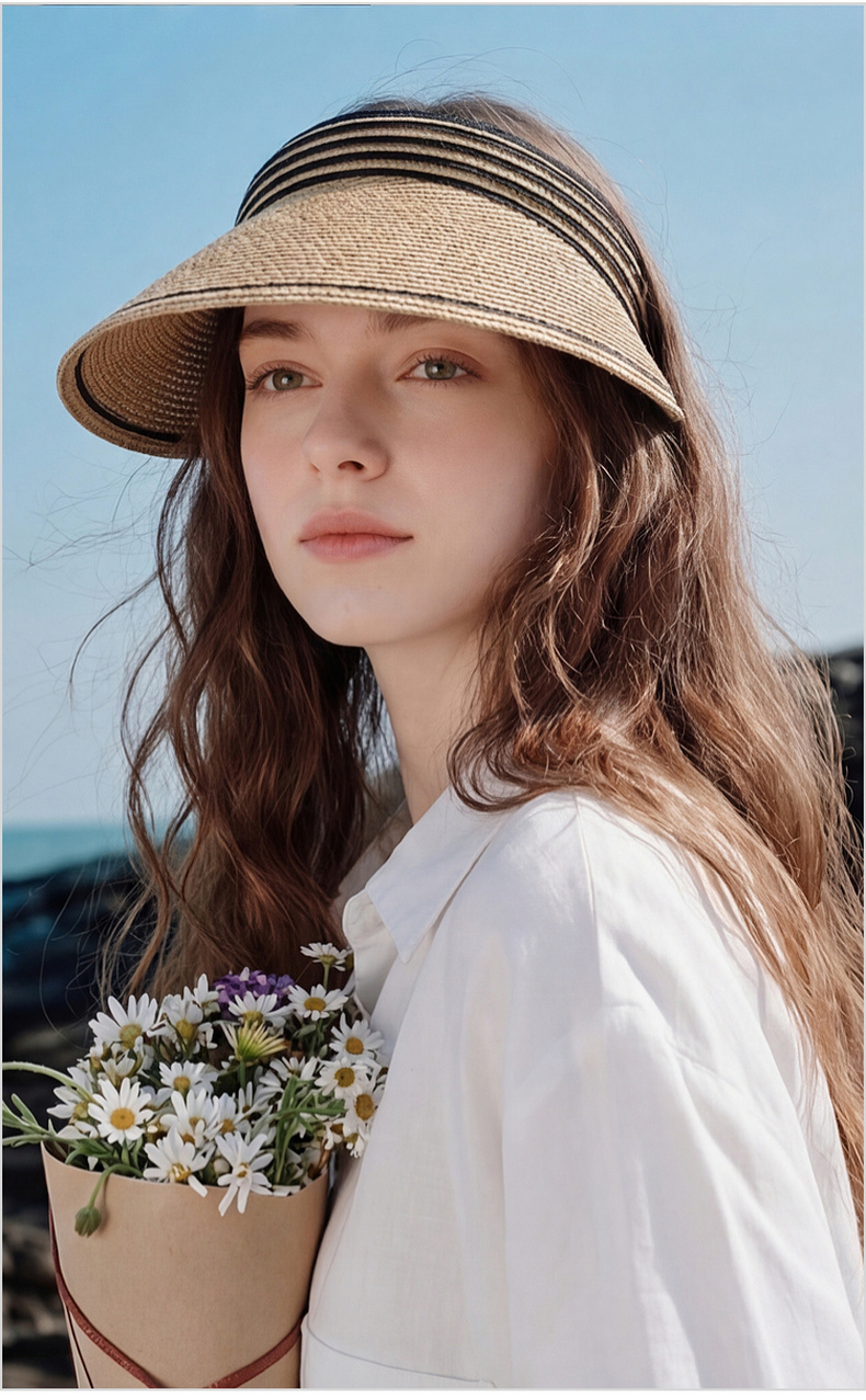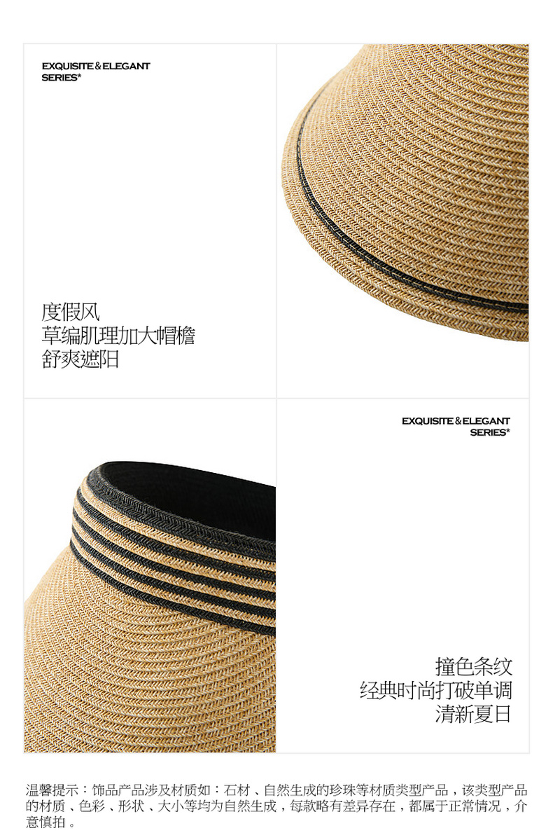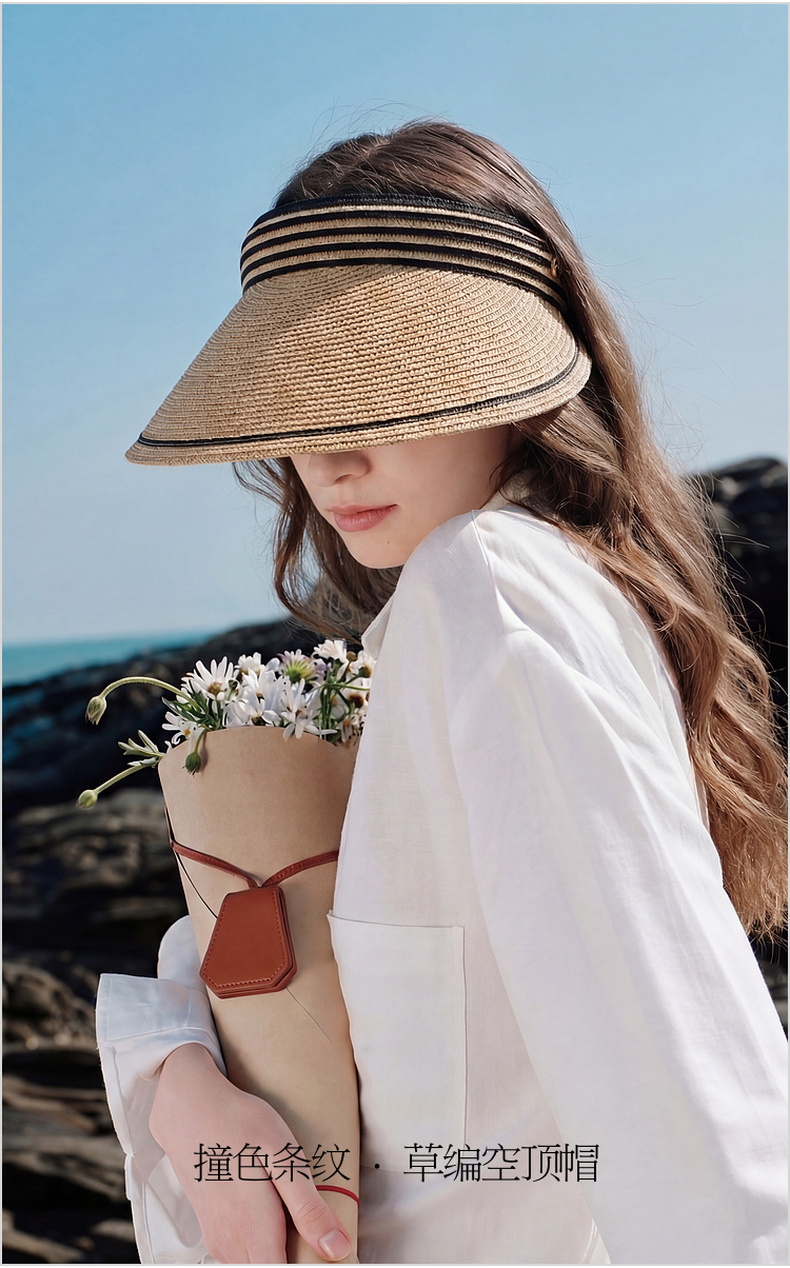 三彩2026新款空顶大帽檐遮阳帽沙滩海边出游夏编织条纹帽子鸭舌女