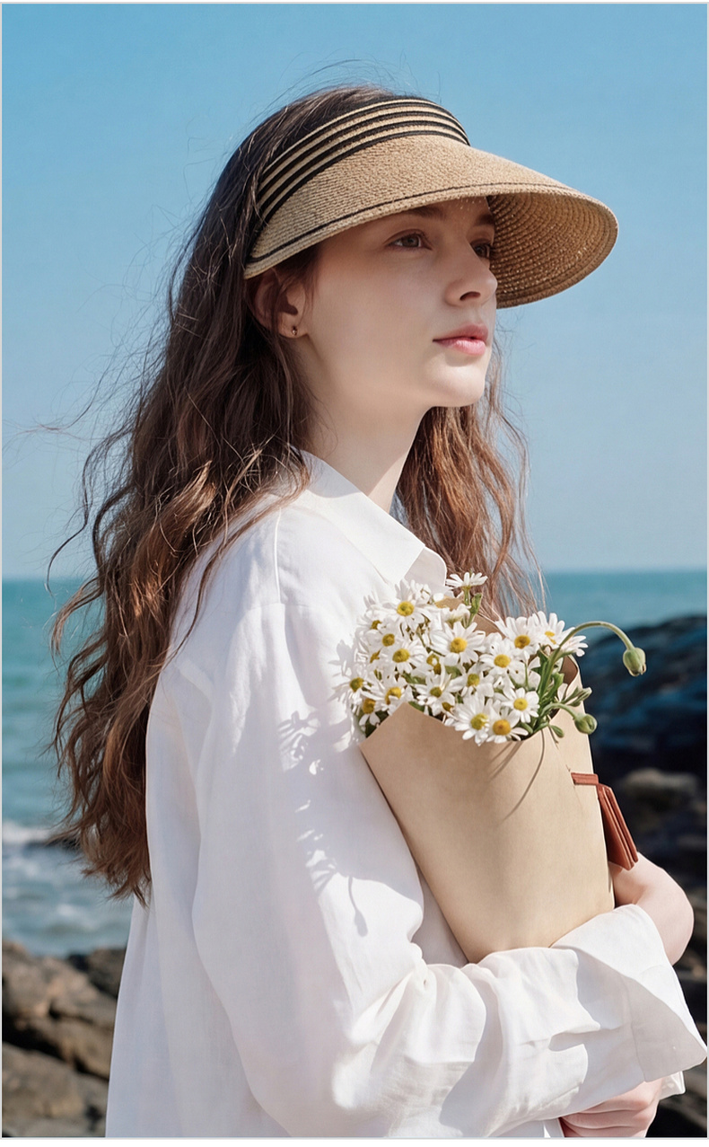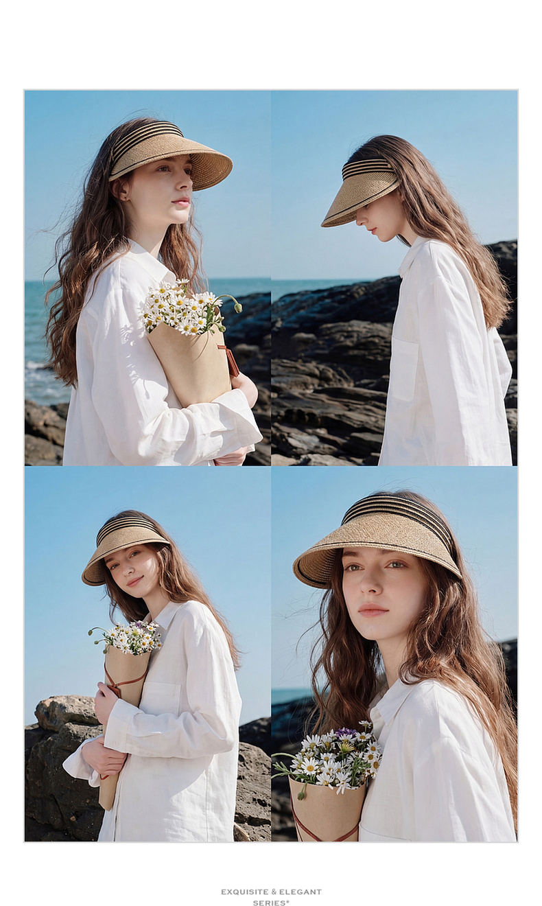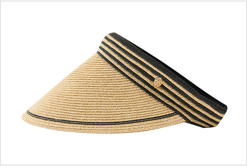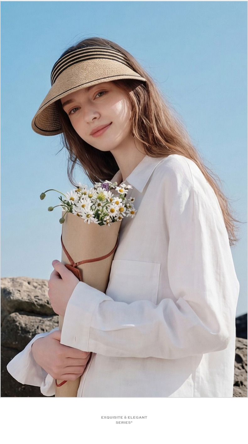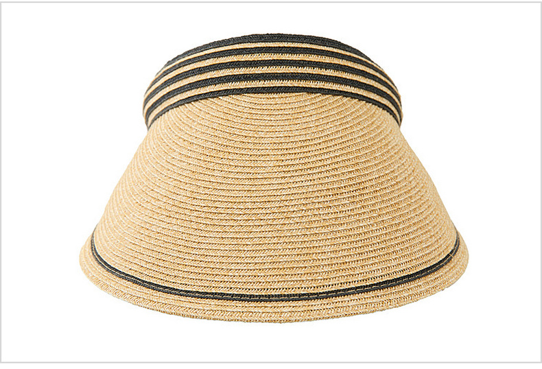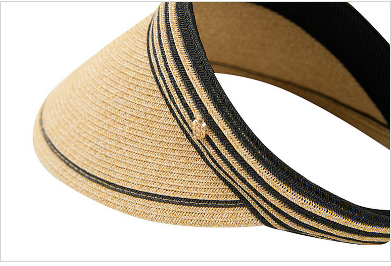 三彩2026新款空顶大帽檐遮阳帽沙滩海边出游夏编织条纹帽子鸭舌女