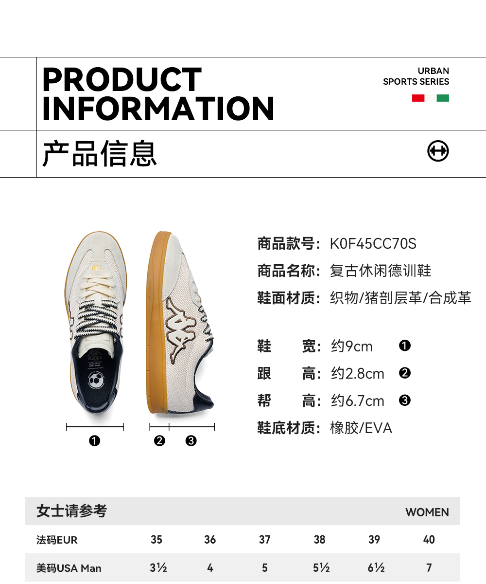 Kappa卡帕背靠背TIFO德训鞋女款2025春季新款情侣鞋复古板鞋子男K0FX5CC70S K0F45CC70S