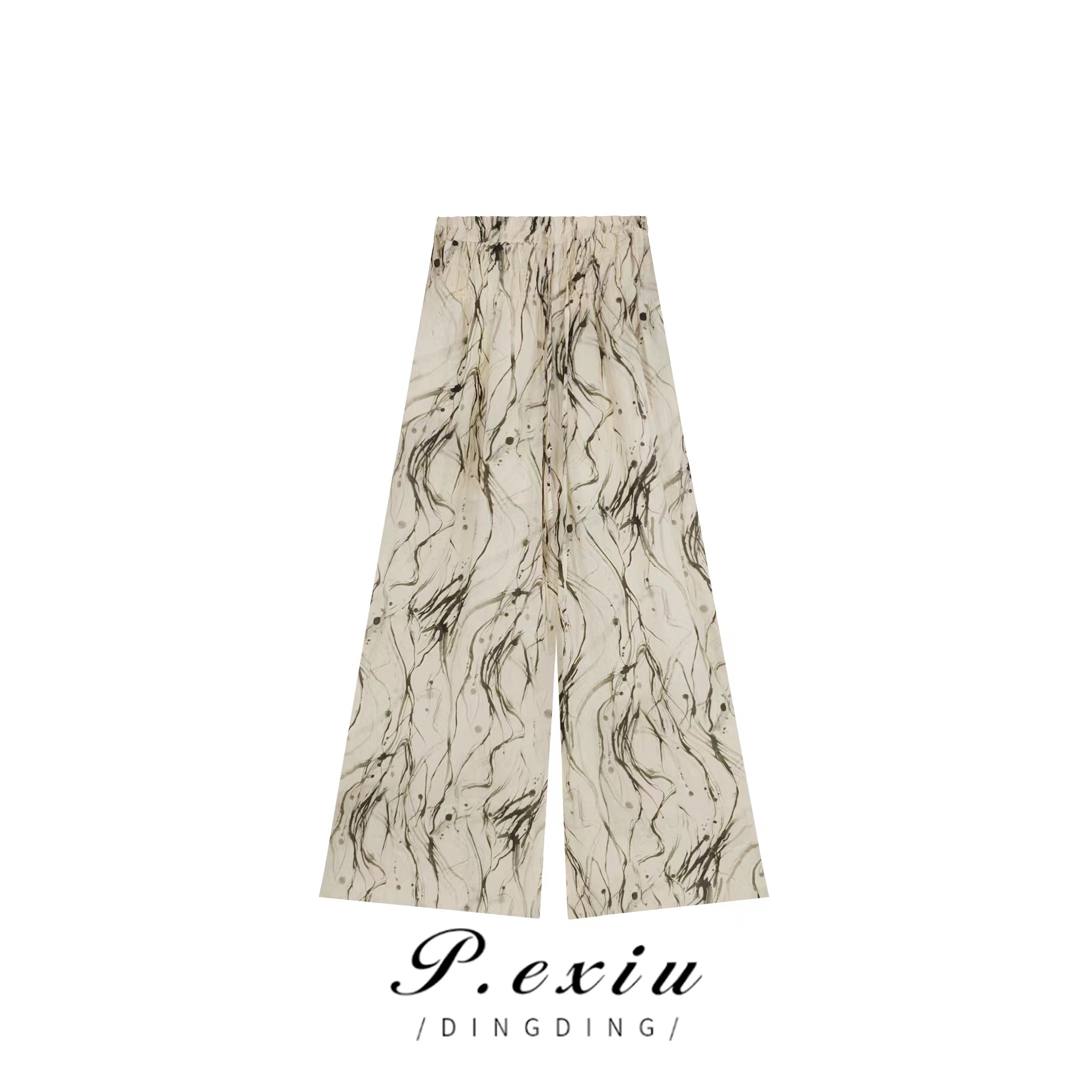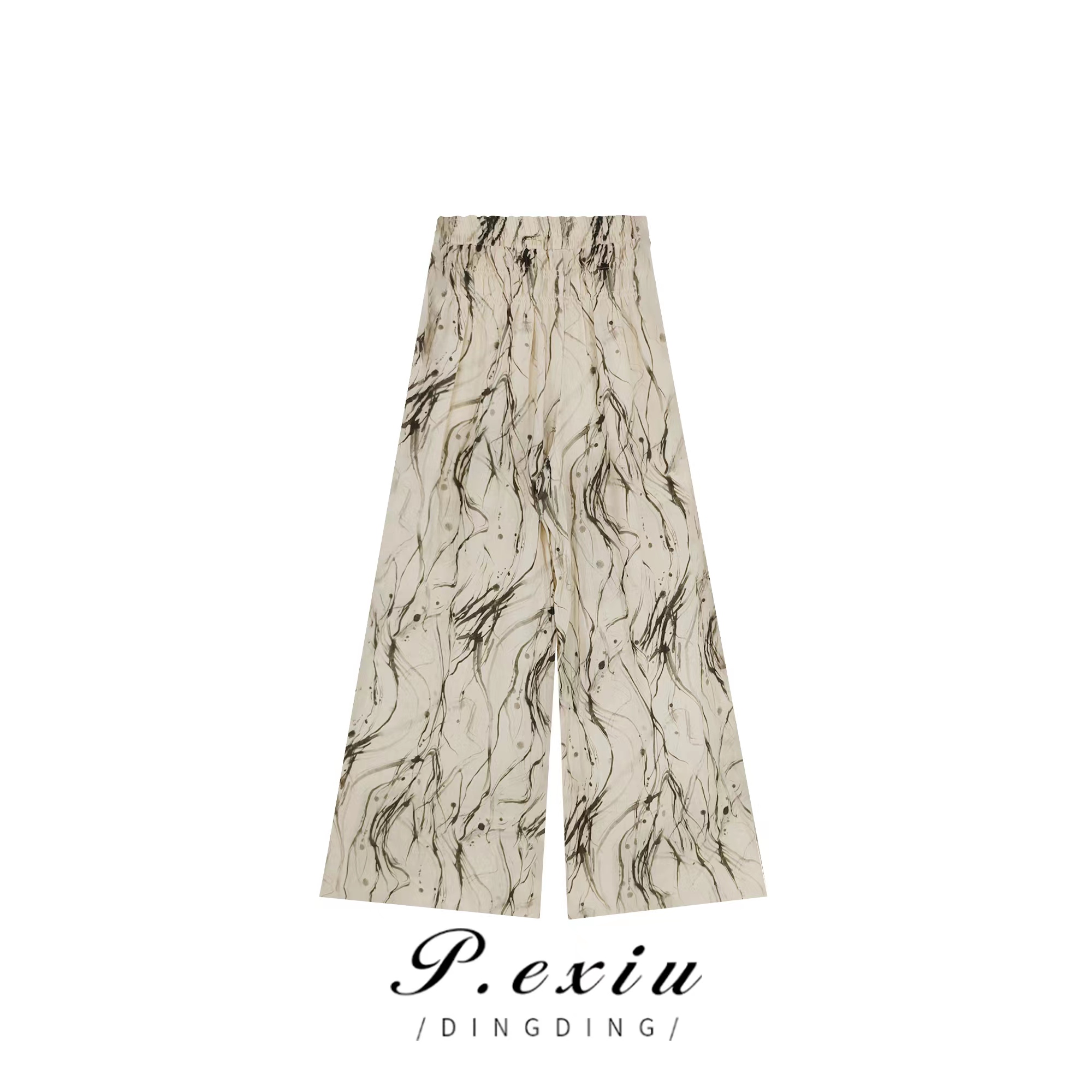 01-1潘依绣丁丁宠粉夏季新款水墨风宽松时尚阔腿休闲裤 K1529