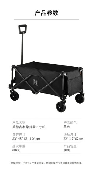 美穗吉家 聚拢款5寸轮露营车100L(黑色)