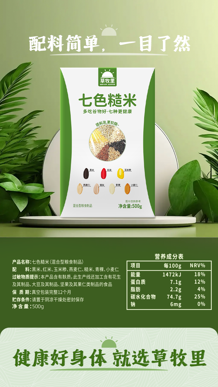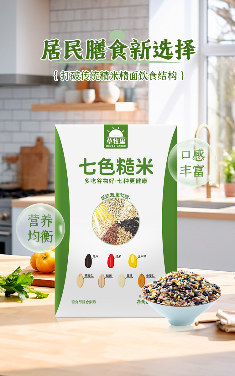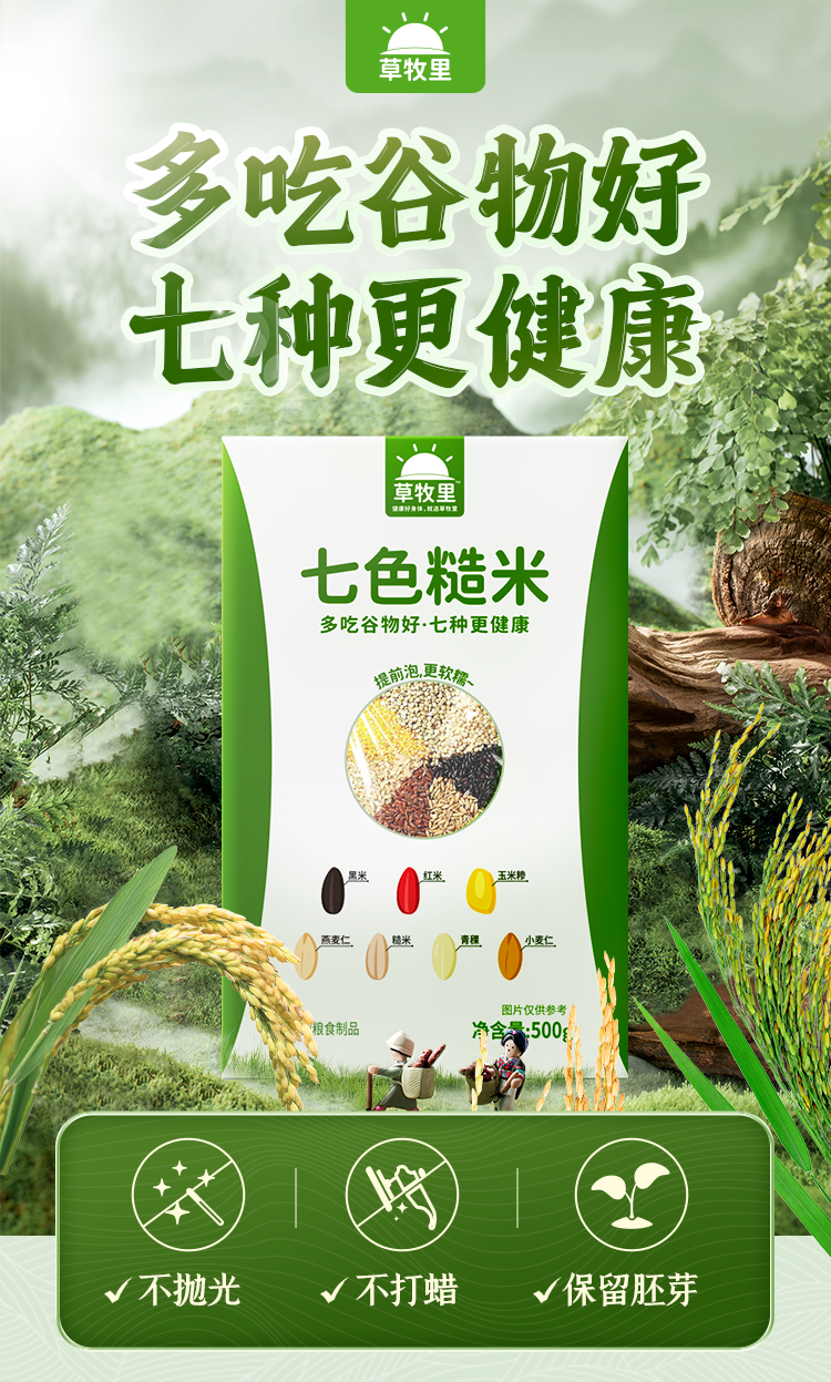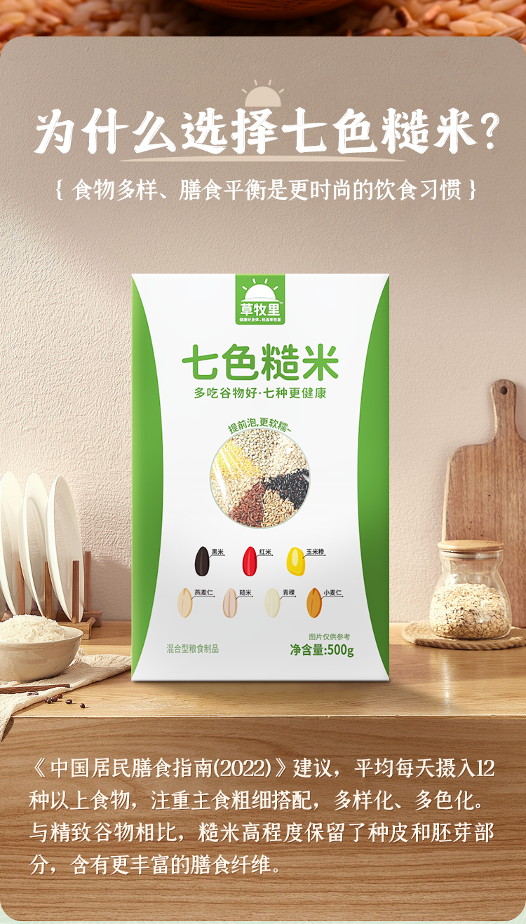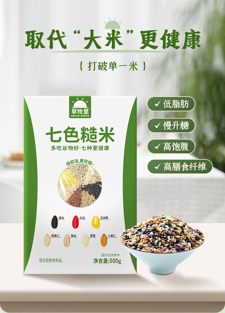 【纤香饱满】草牧里 七色糙米试用装 500g/盒 多吃谷物好七种更健康