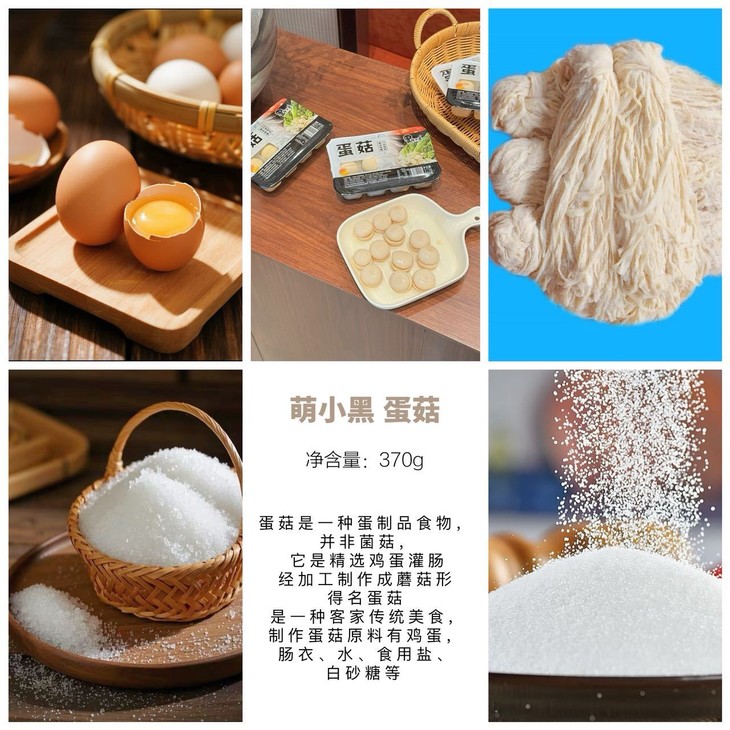 【品名】蛋菇 【品牌】萌小黑 【规格】370g*3盒 【储存条件】阴凉通风处,避免阳光照射 【食用方法】开袋即食和佐料配菜炸、烩、炒、红烧、火锅即可 【保质期】9个月 【生产日期】最新(随批次更新) 【发货地】福建漳州 【生产地】福建漳州 【发货时效】72小时 【快递公司】韵达、中通随机发 【不发货地区】新疆、西藏、内蒙、青海、甘肃、宁夏、港澳台 【加运费地区】北京、上海、海南、深圳+1元/件 【售后规则】 1、食品类不支持七天无理由退换货 2、若收到产品有质量问题或者破损少件,请签收24小时内对产品拍照+快递箱面单照片联系售后处理 3:个人口味问题不在售后范围内 【拦截/拒收/退货费用】改地址扣除1元, 拦截/拒收/退货扣除3元
