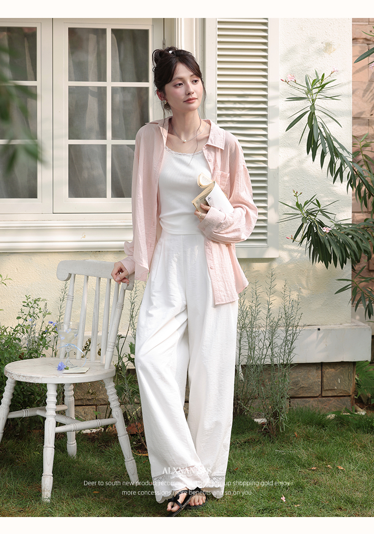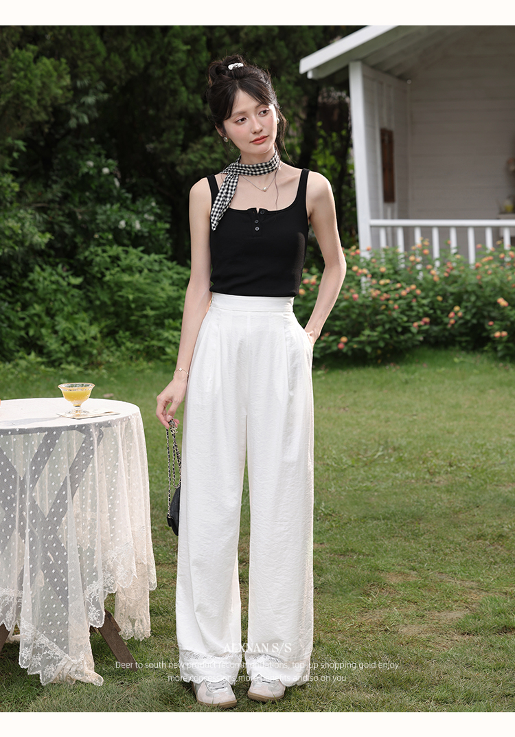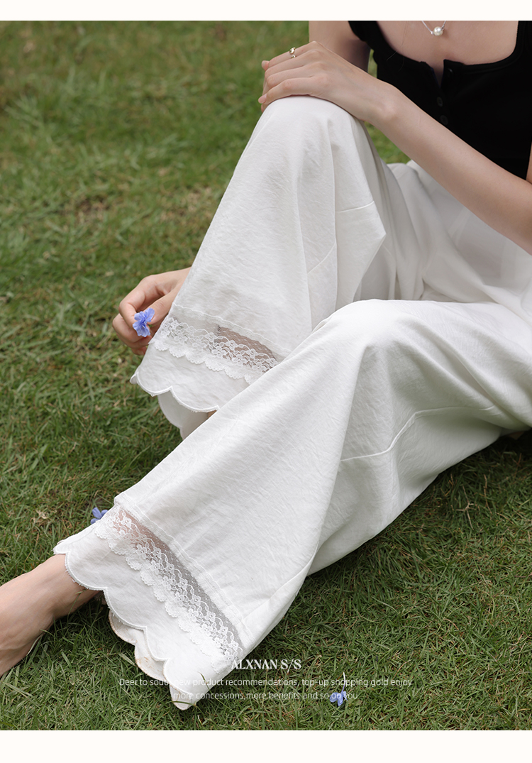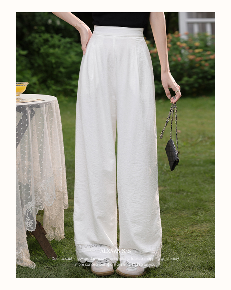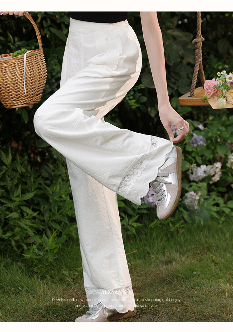 鹿向南「白调清风」气质杏白色直筒花边休闲裤女夏季薄款百搭长裤