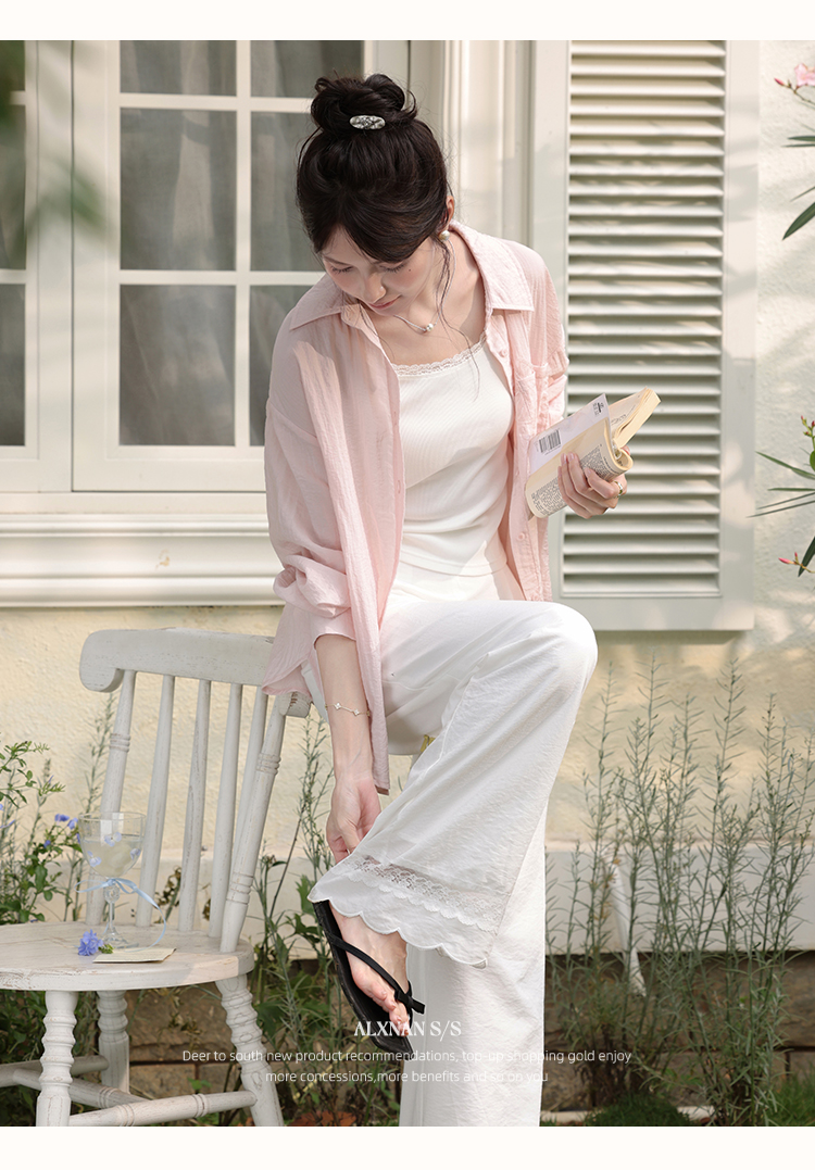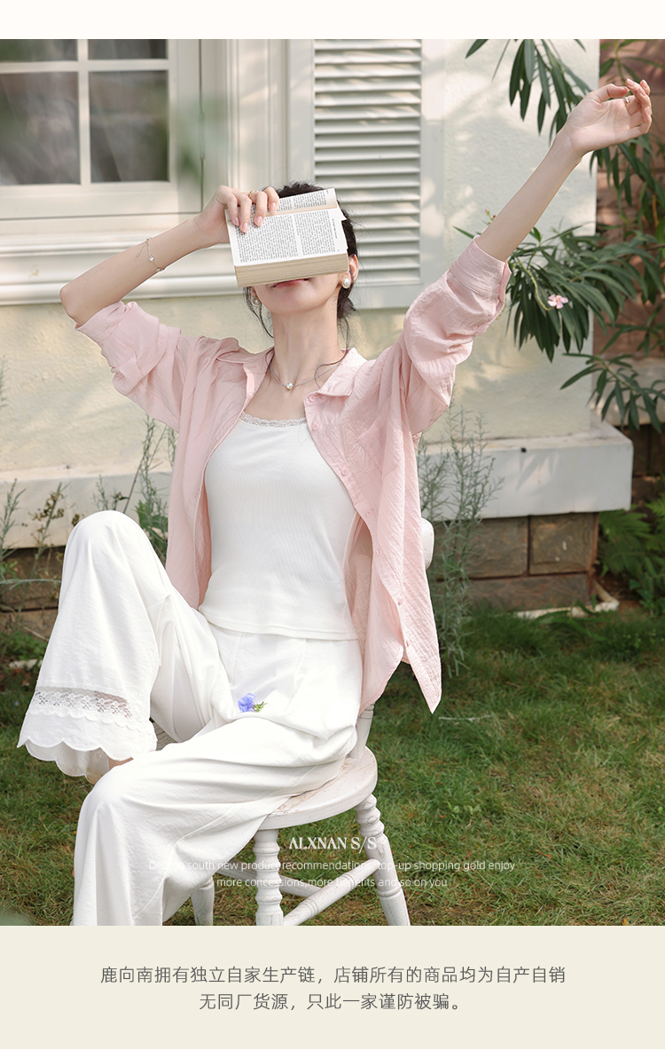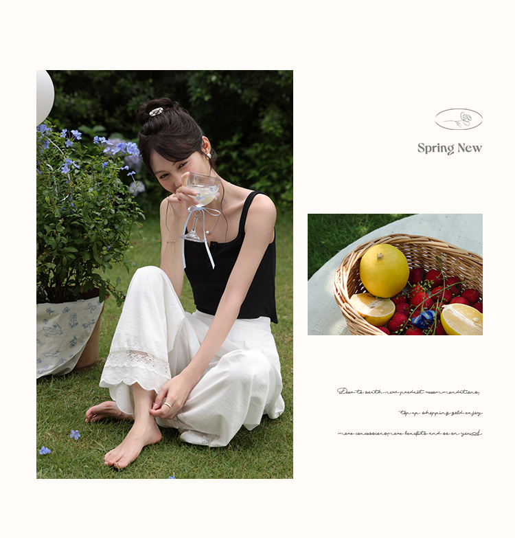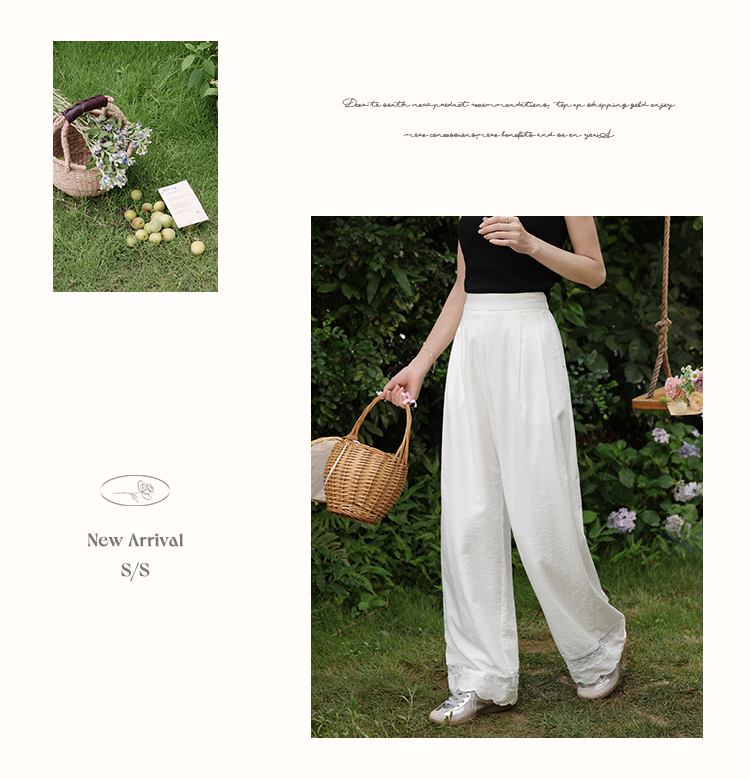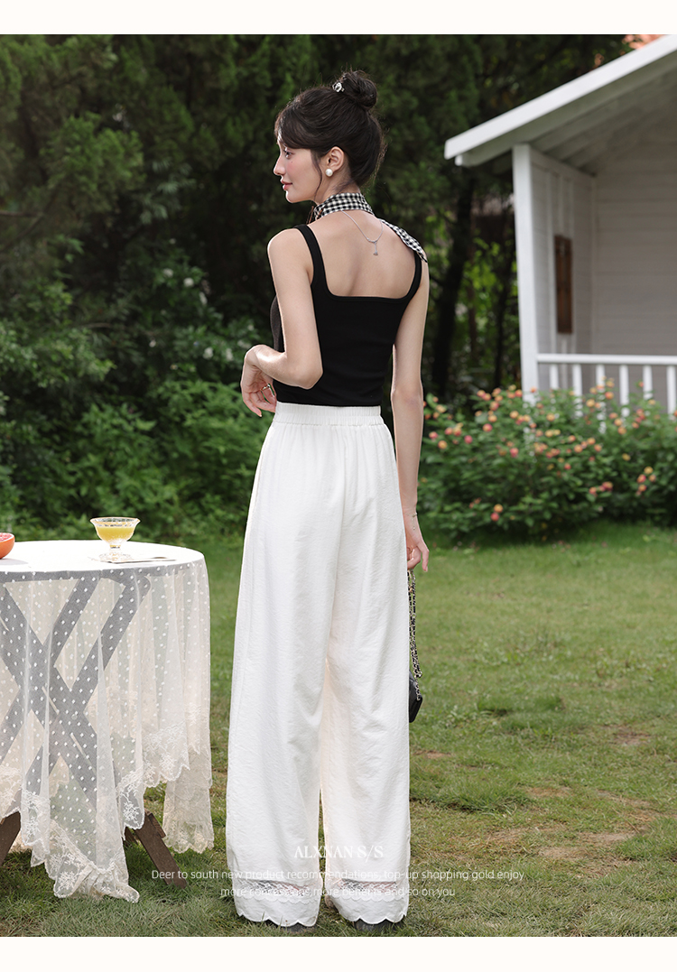 鹿向南「白调清风」气质杏白色直筒花边休闲裤女夏季薄款百搭长裤