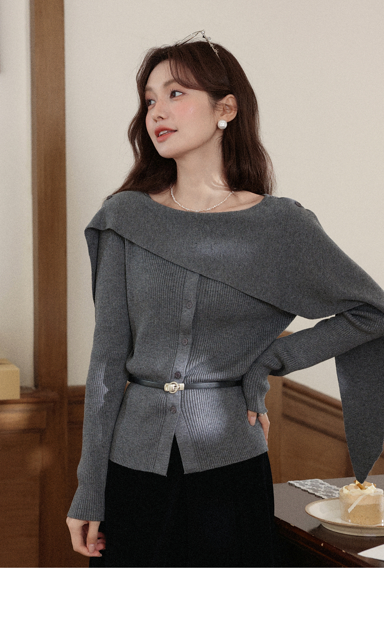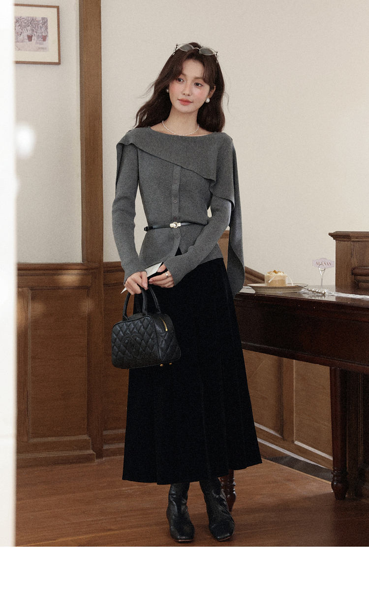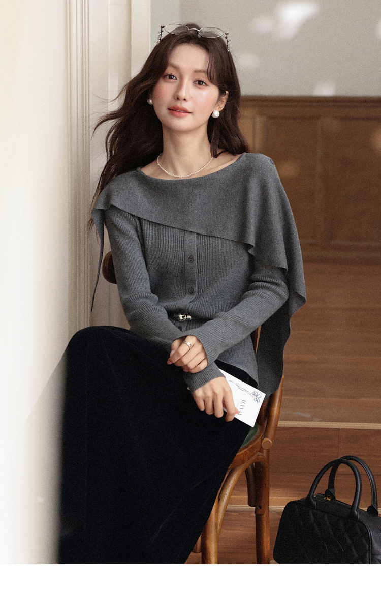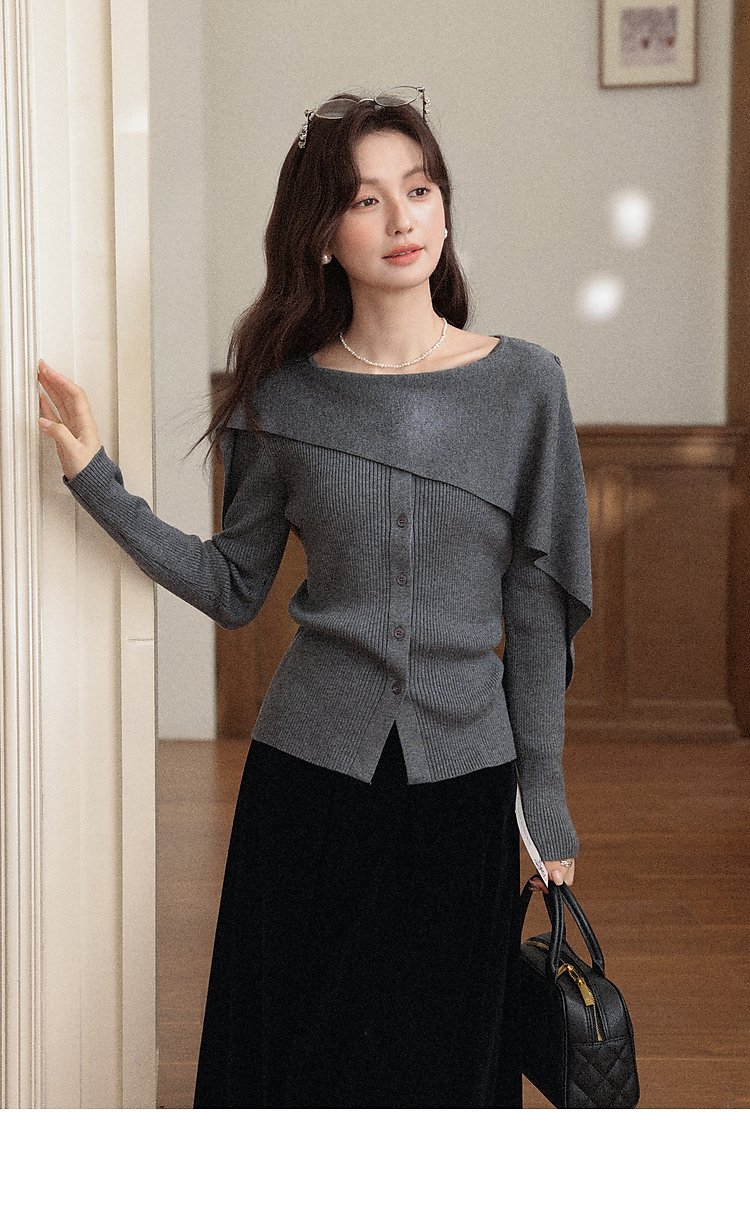 鹿向南「素色藏诗」灰色长袖百搭毛针织衫女秋冬款设计感时尚上衣