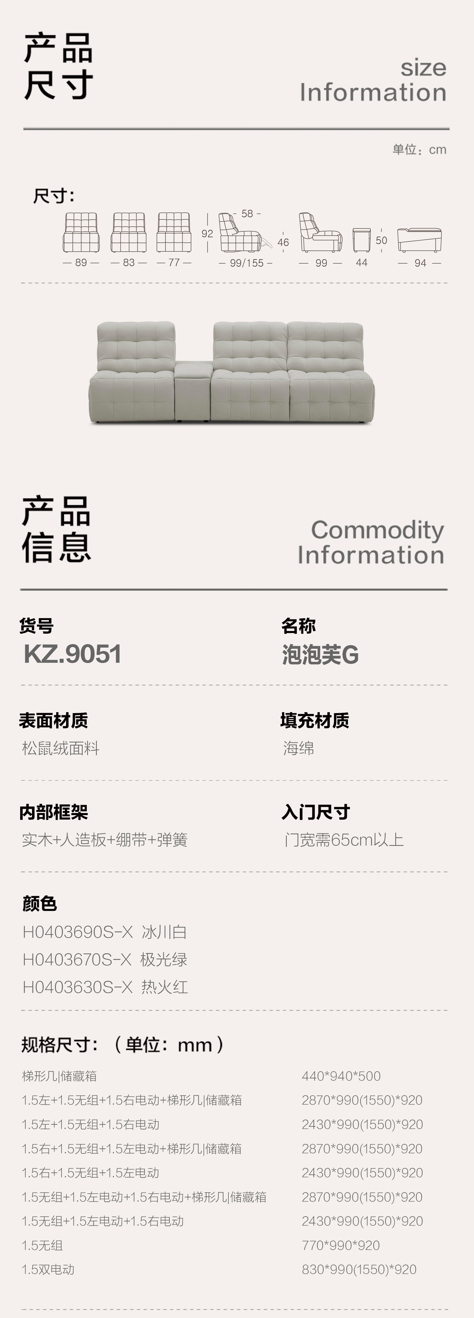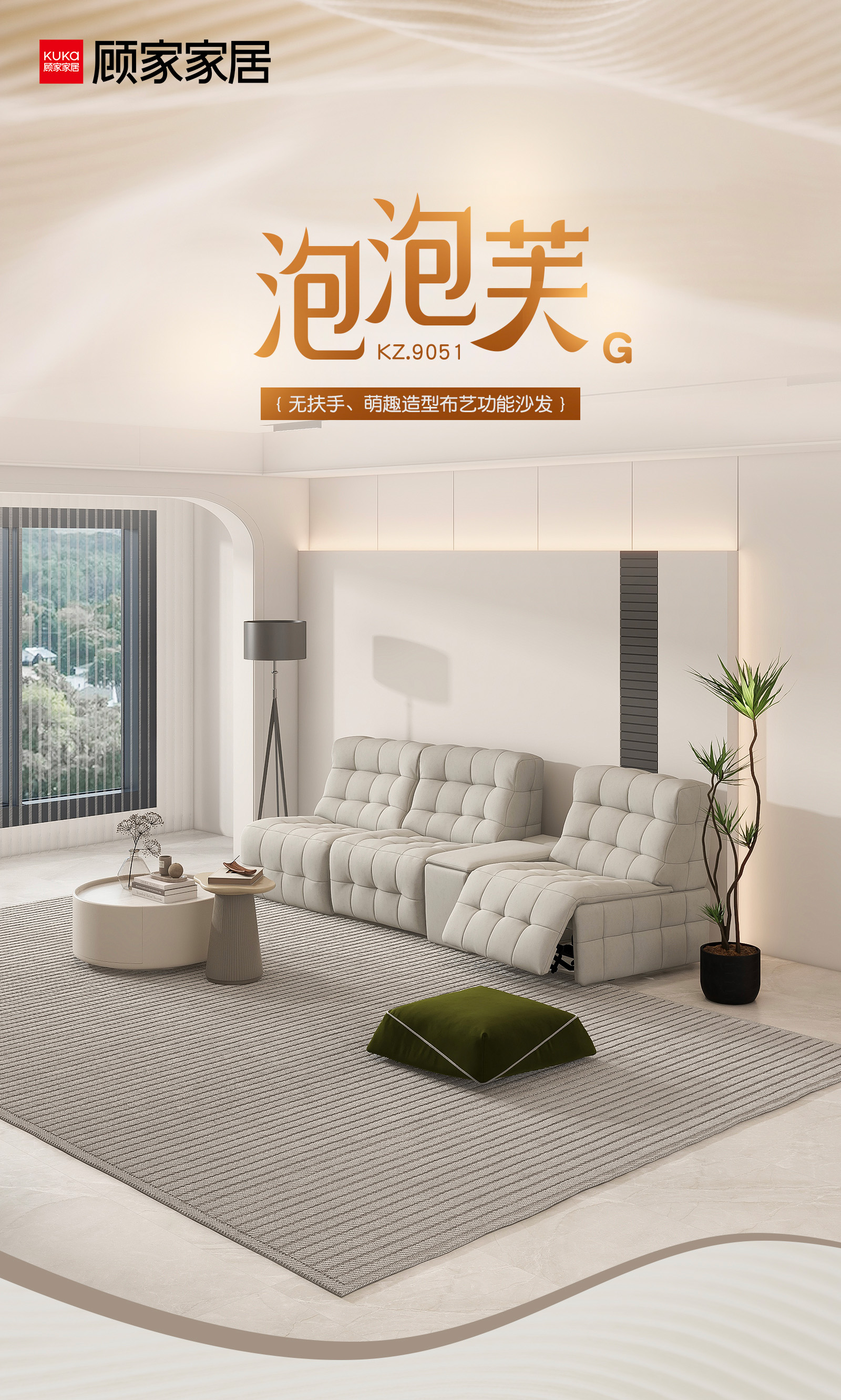 顾家家居整装 现代时尚 布艺功能沙发 KZ.9051泡泡芙