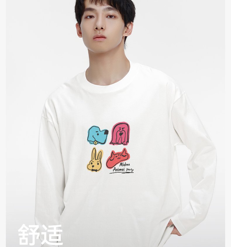 「棉的美学」纯棉卡通小猫印花T恤春秋打底衫休闲宽松百搭长袖上衣