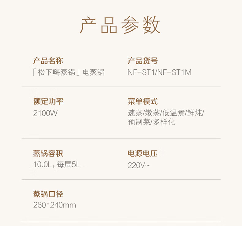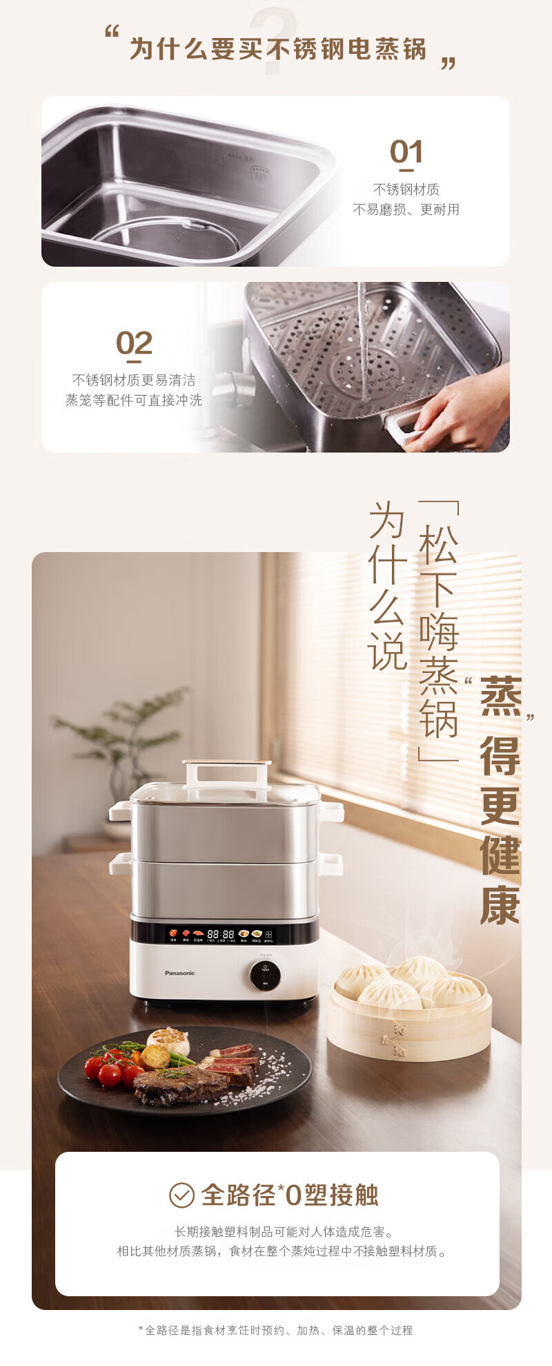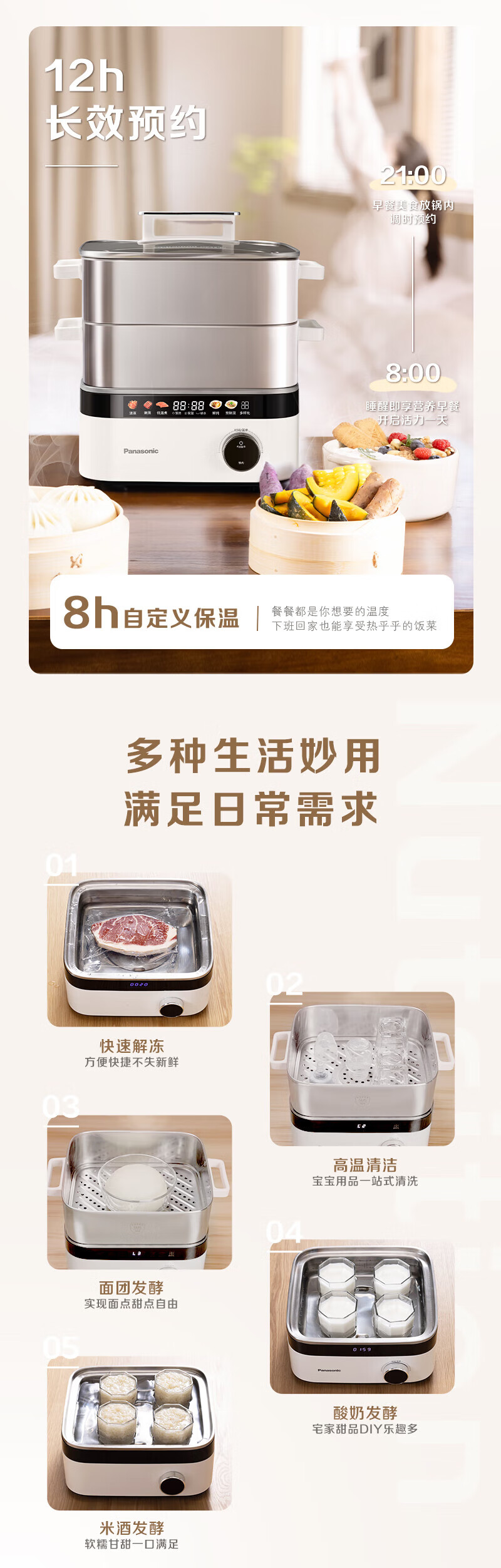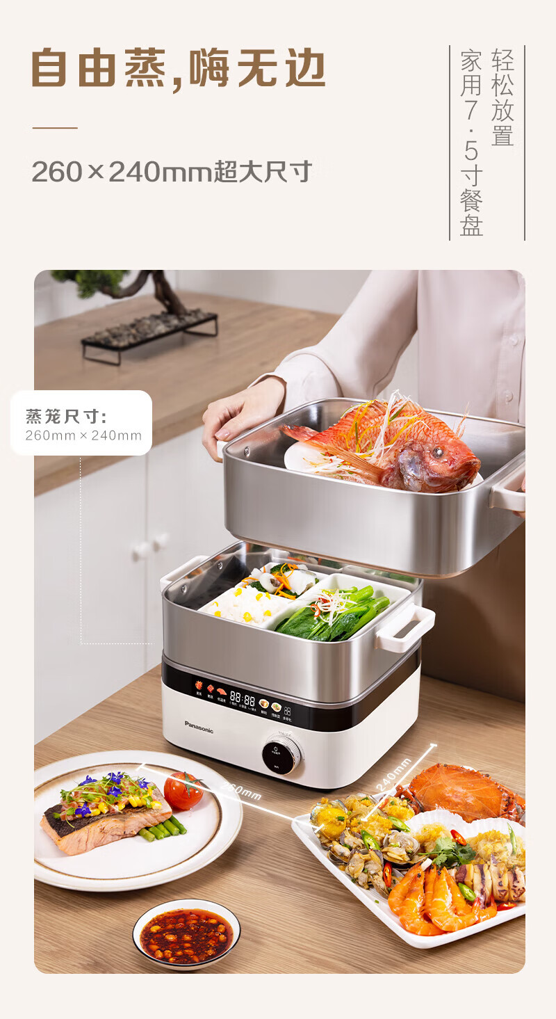 松下(Panasonic)嗨蒸锅多层电蒸锅多功能锅 电煮锅多用途电热锅智能预约双层蒸笼炖蒸煮一体NF-ST1_qb