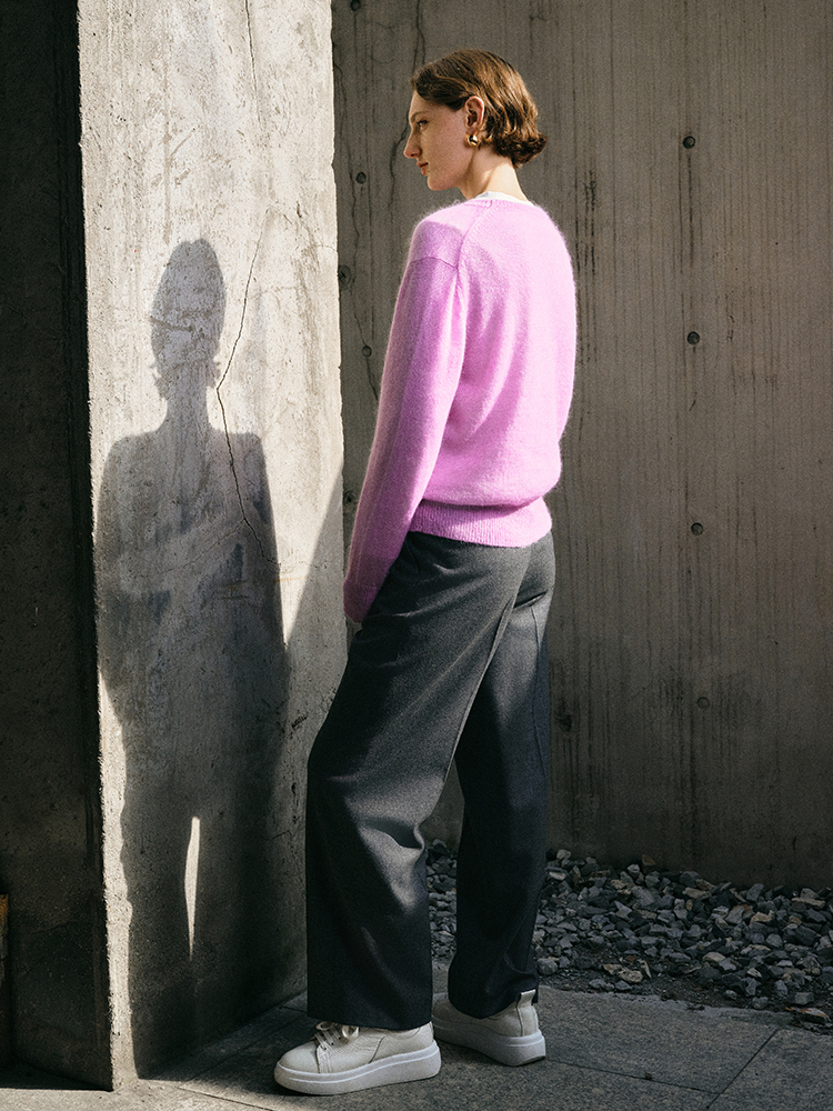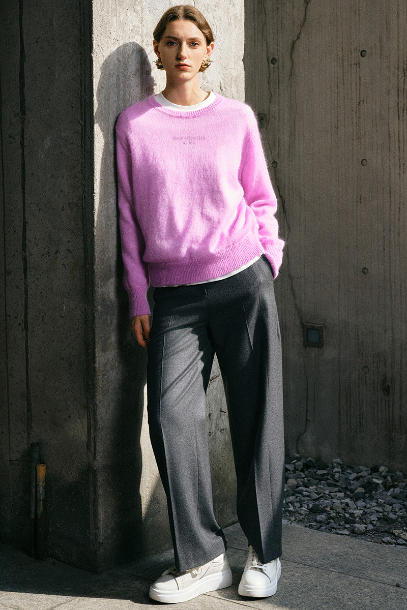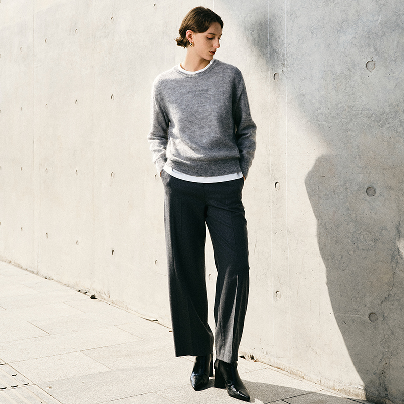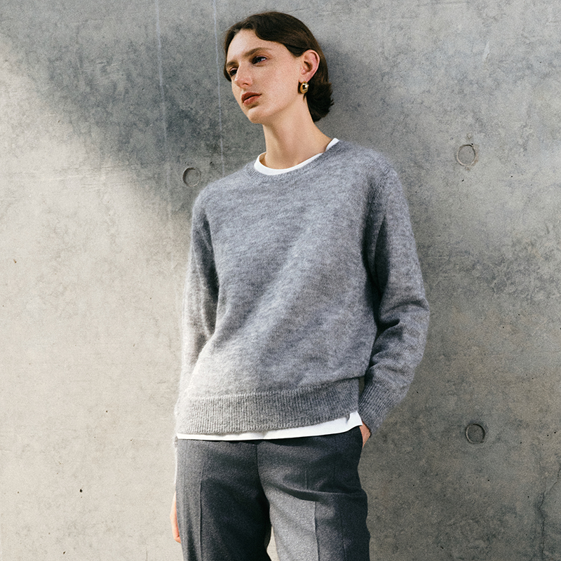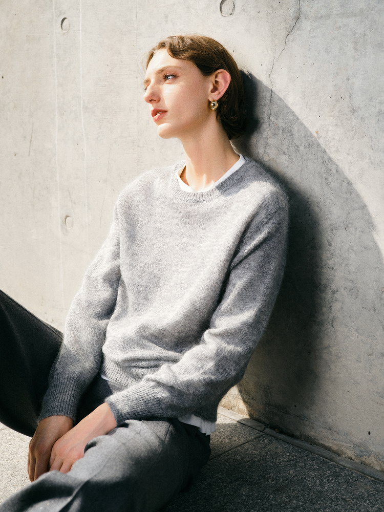 ICB日系春季通勤宽松马海毛羊毛混纺圆领套头毛衣编织衫商场同款