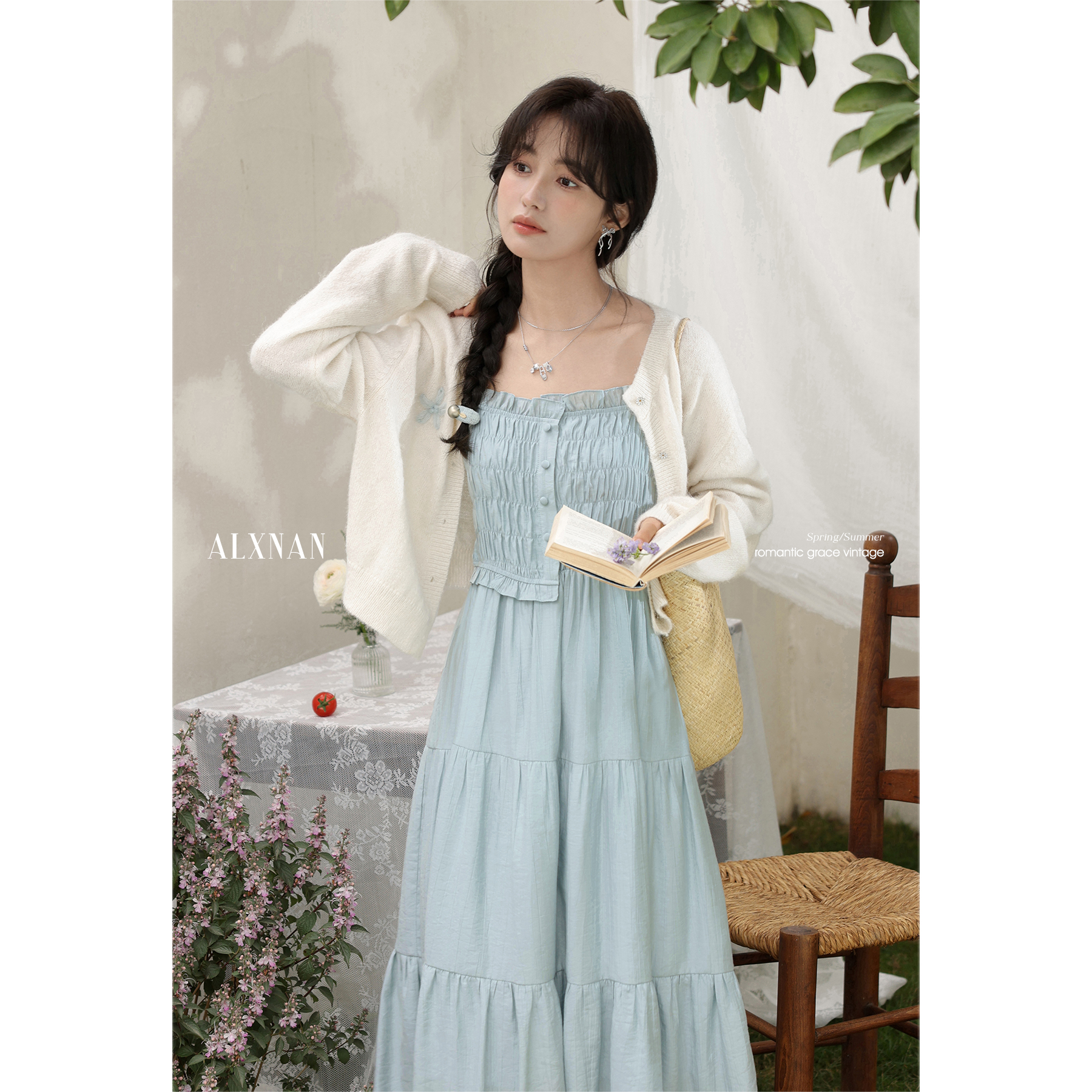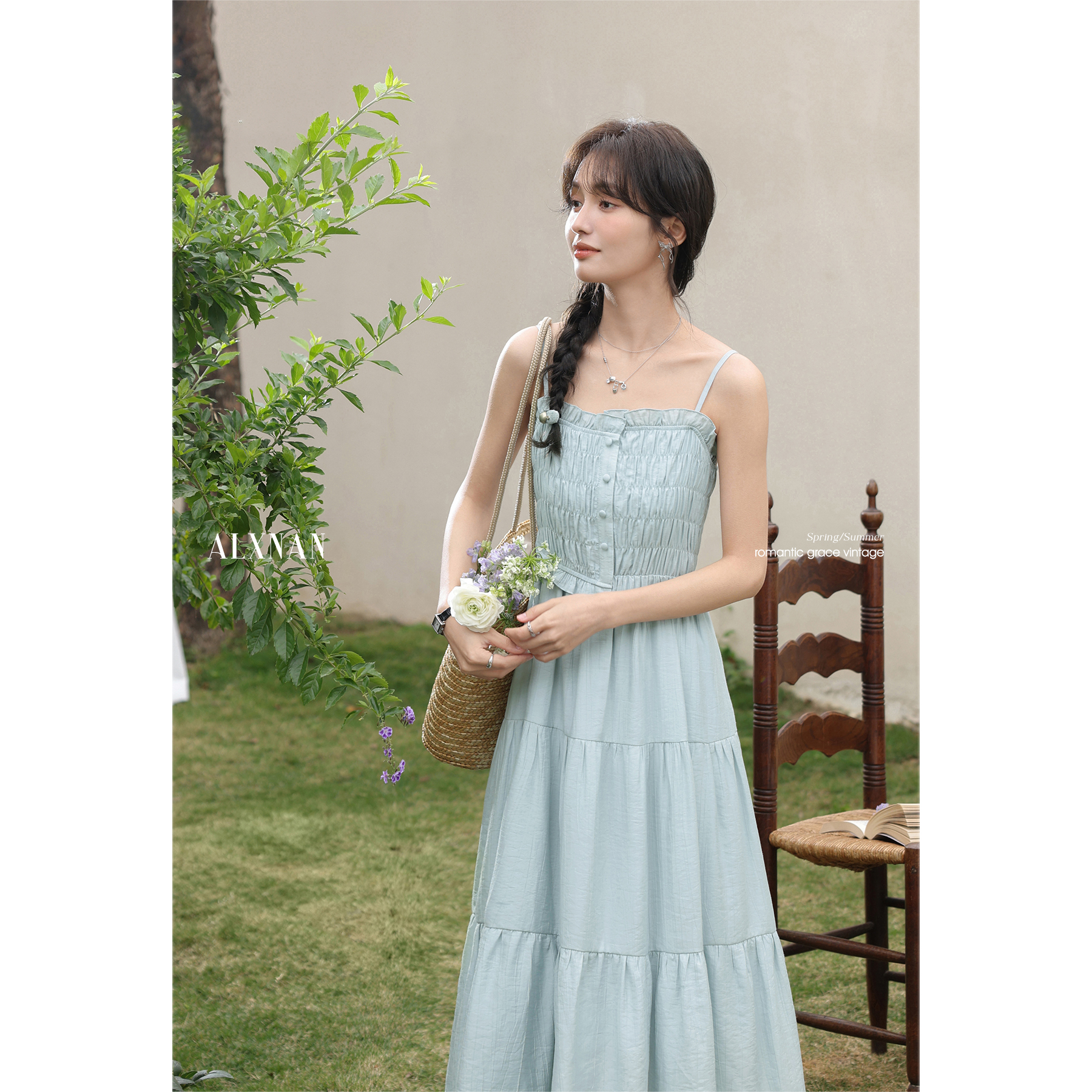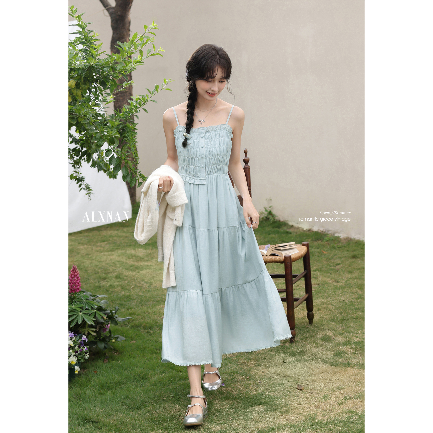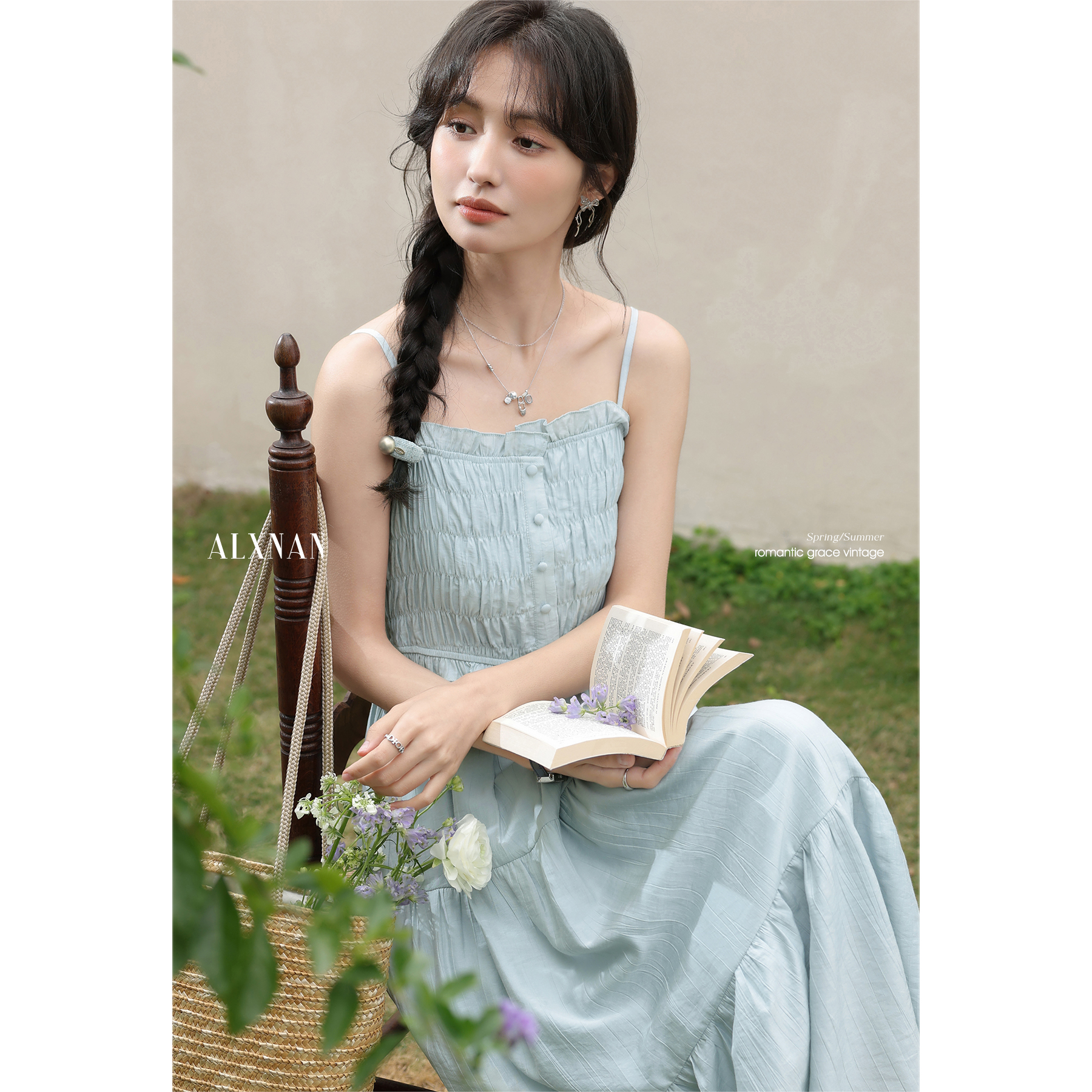 鹿向南「筠雾微风」气质吊带连衣裙女2025新款夏无袖收腰长裙J12503LYQ