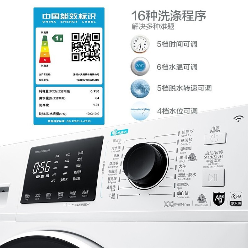 小天鹅(LittleSwan)洗衣全自动滚筒 10kg水魔方变频智能家电TG100VT86WMAD5