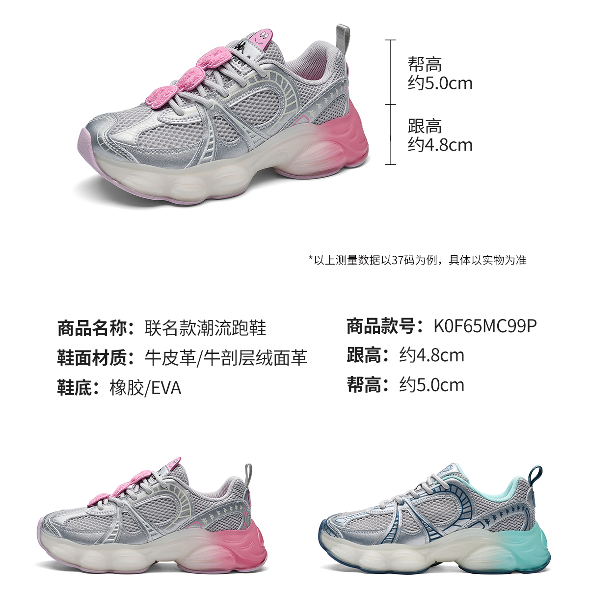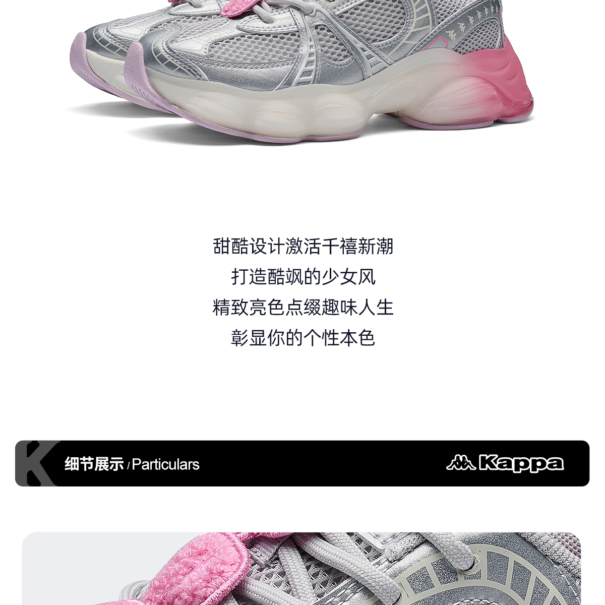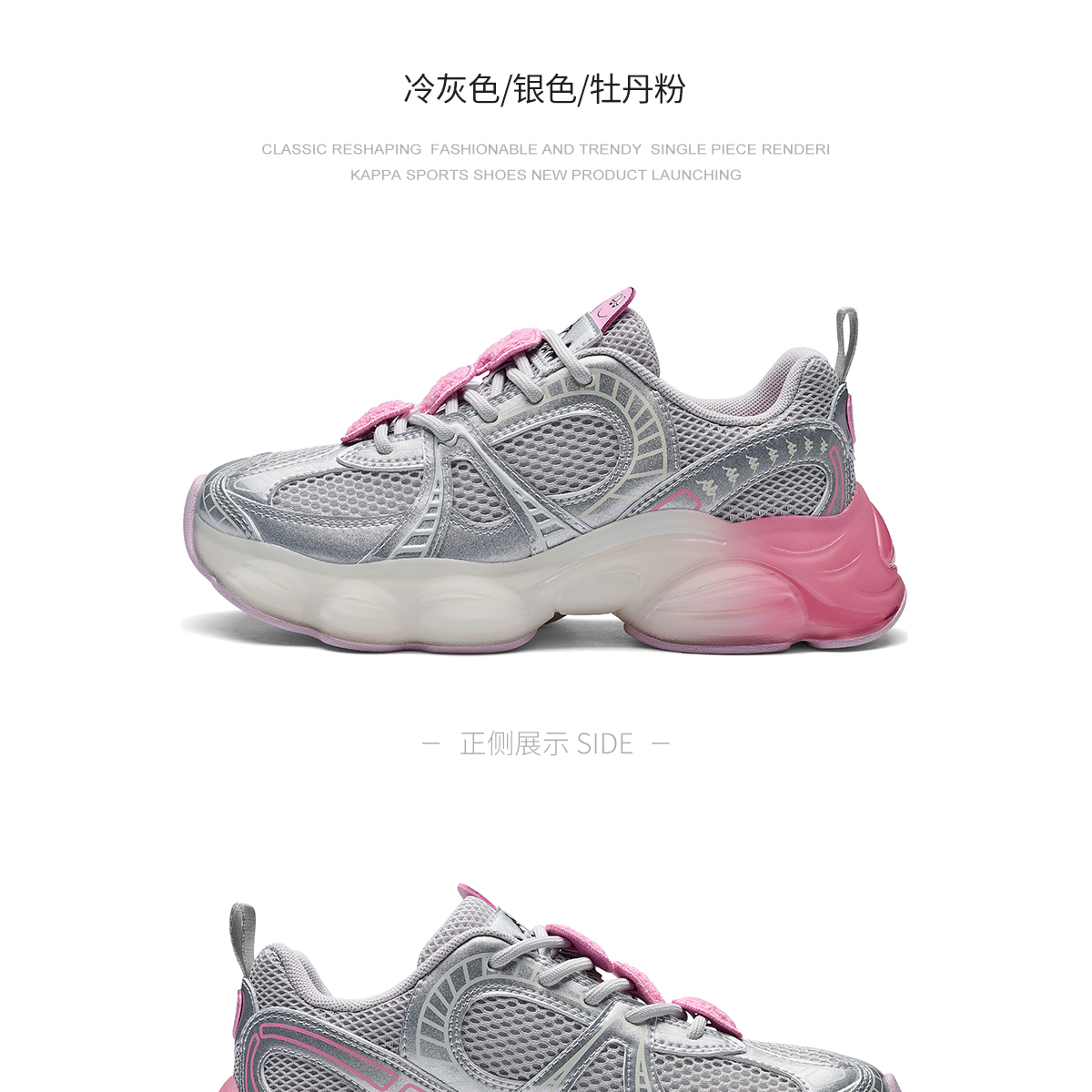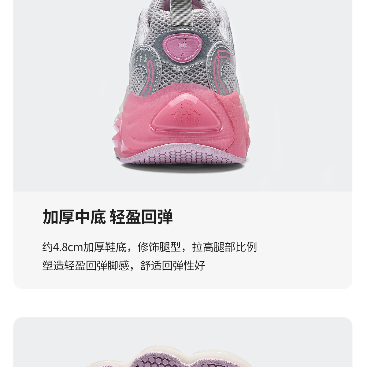 Kappa卡帕背靠背跑鞋女款新款夏季厚底增高老爹鞋网面透气运动鞋K0F65MC99P