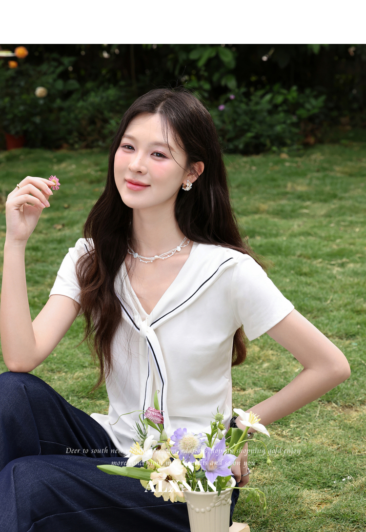鹿向南【0420/20:00新品前1小时7折限量100件】简约百搭白色T恤女