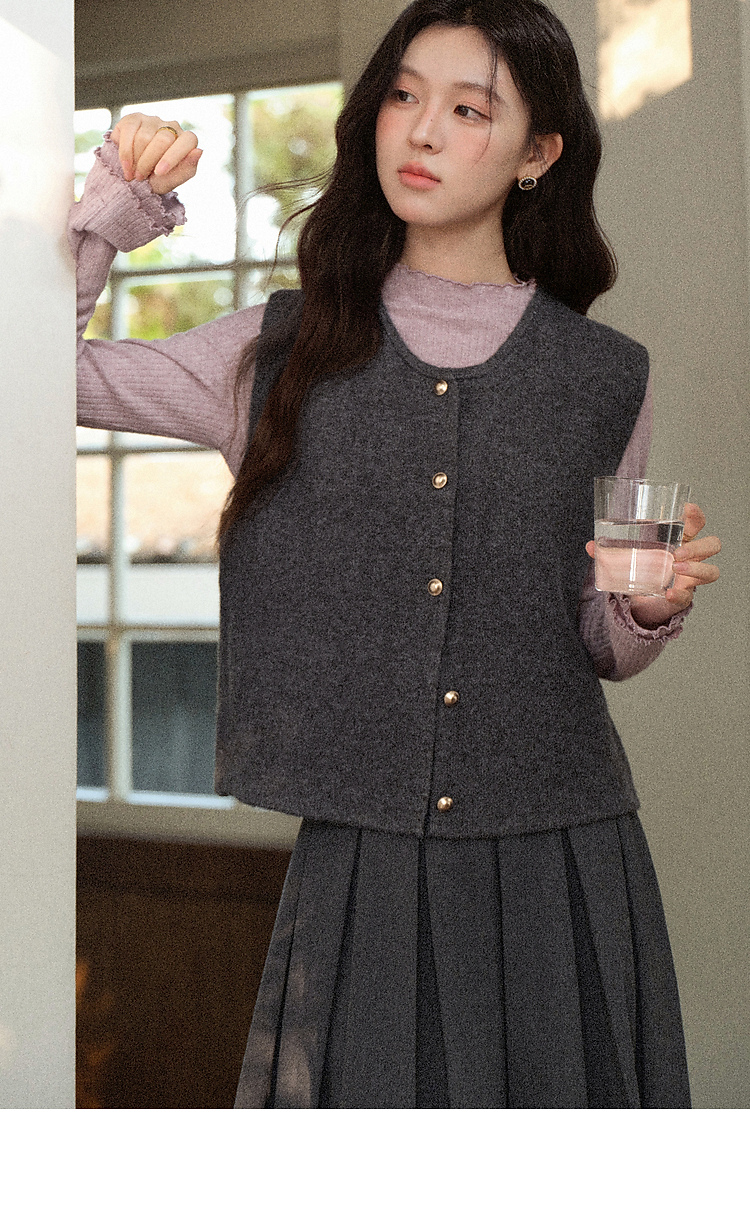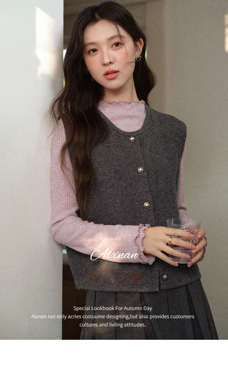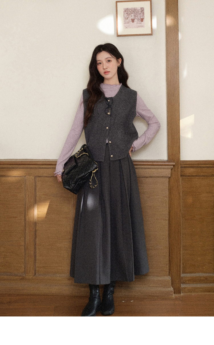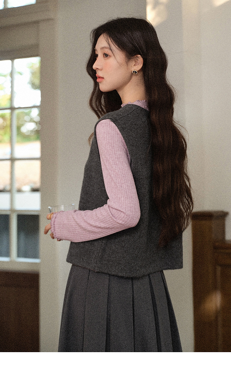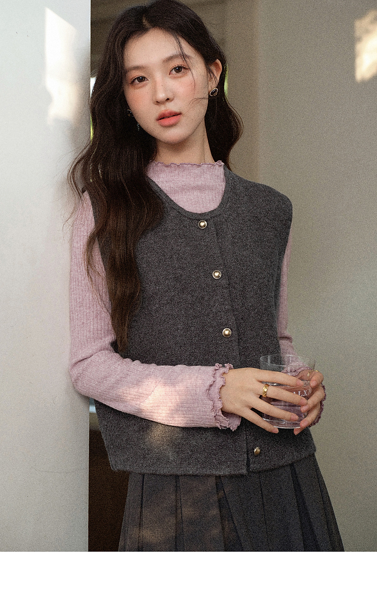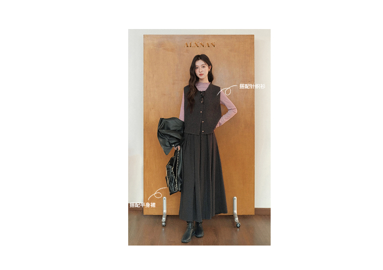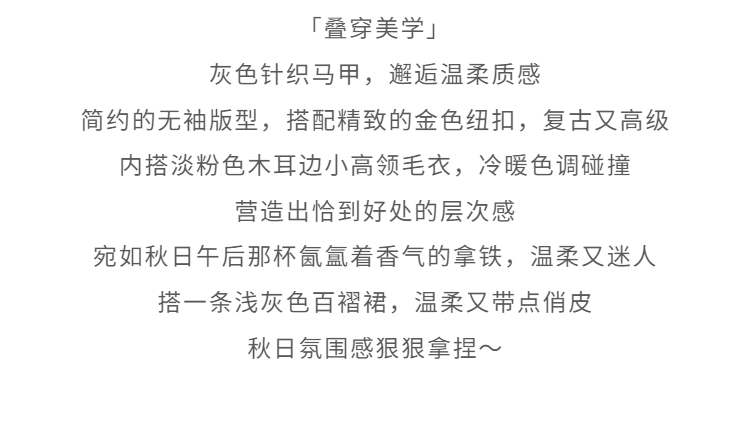 鹿向南「叠穿美学」复古灰色叠穿马夹女秋冬新款小个子针织衫上衣
