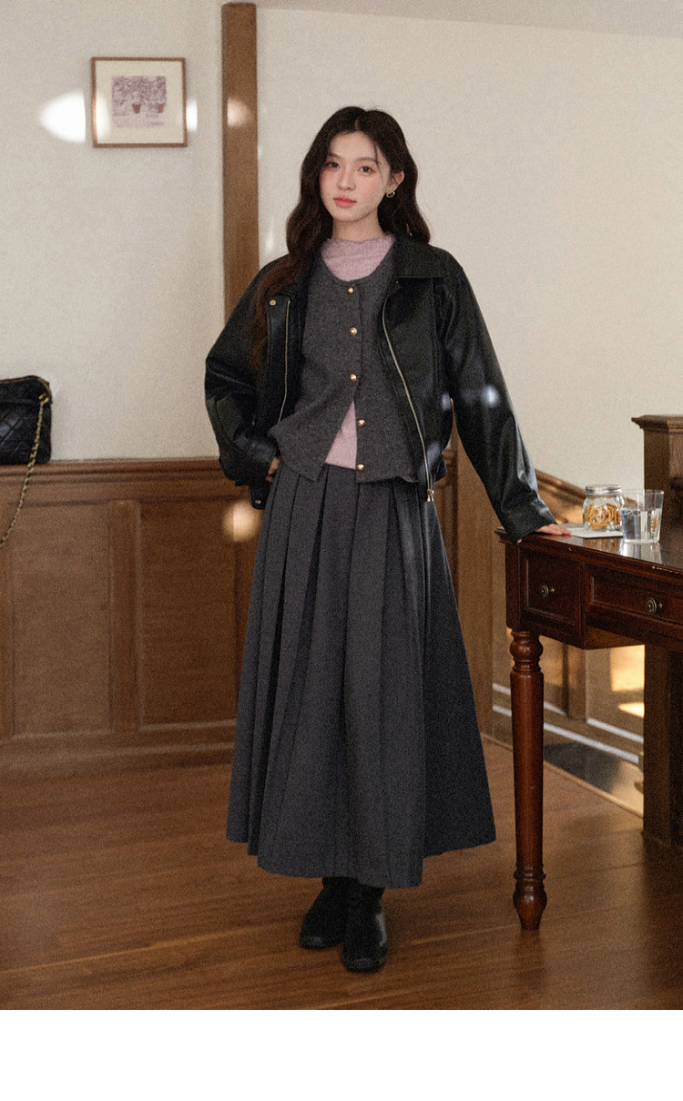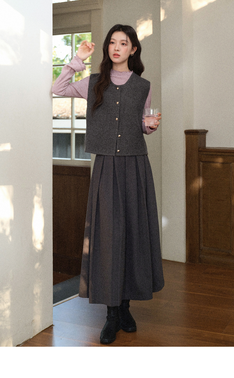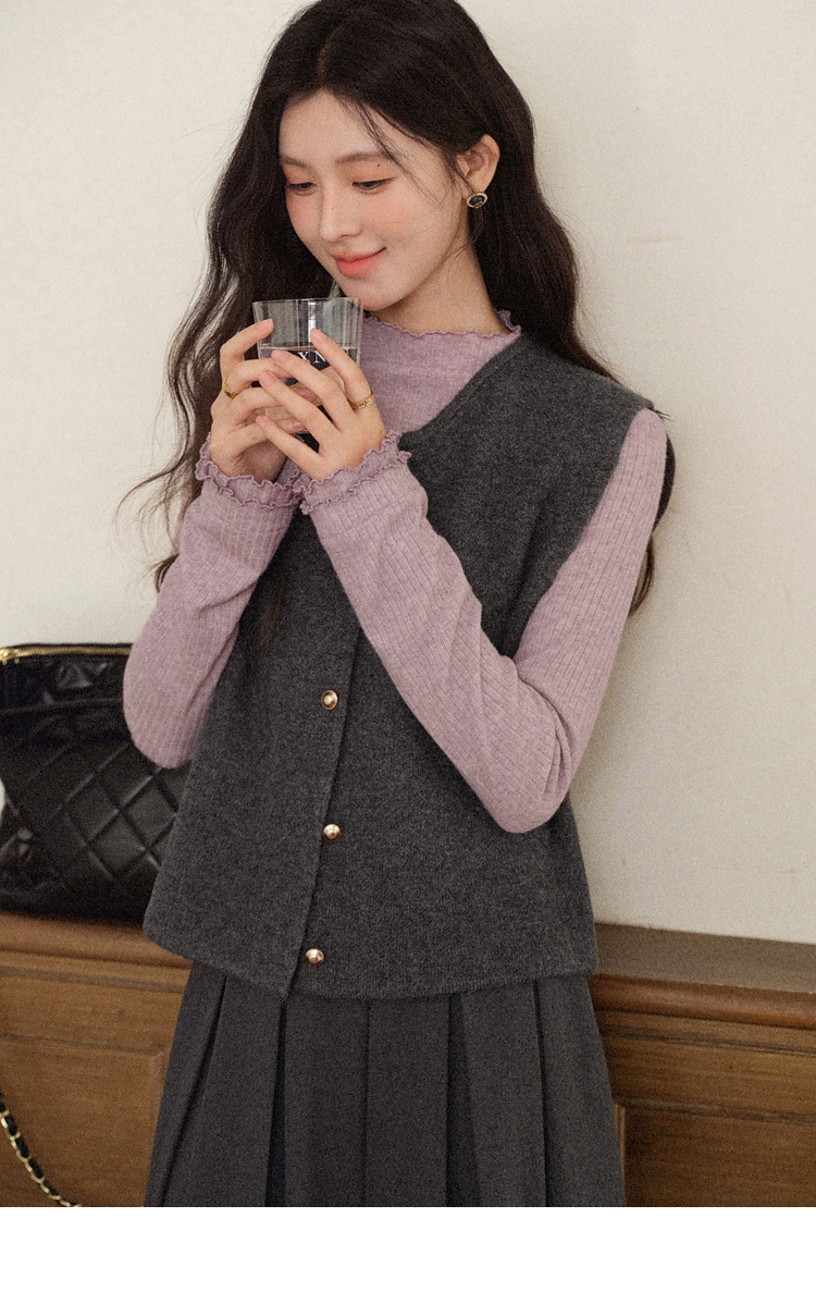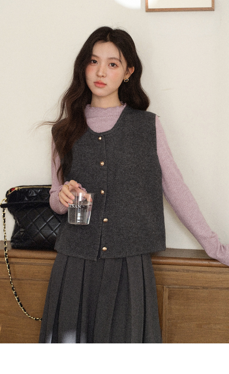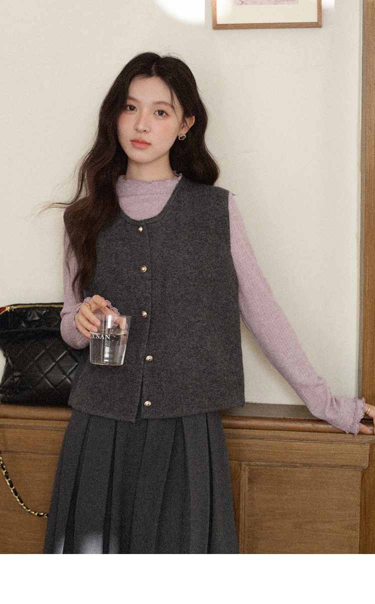 鹿向南「叠穿美学」复古灰色叠穿马夹女秋冬新款小个子针织衫上衣