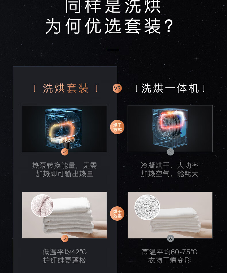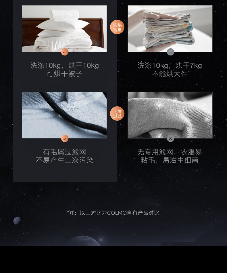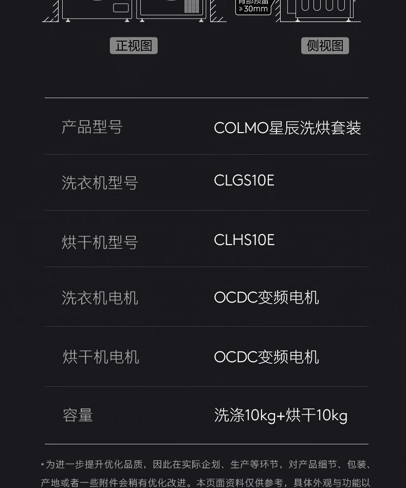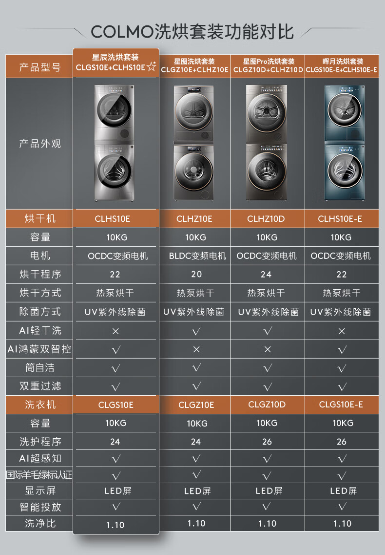 COLMO 10kg家用滚筒洗衣机烘干机 热泵式洗烘套装组合星辰系列CLGS10E+CLHS10E 洗烘套装