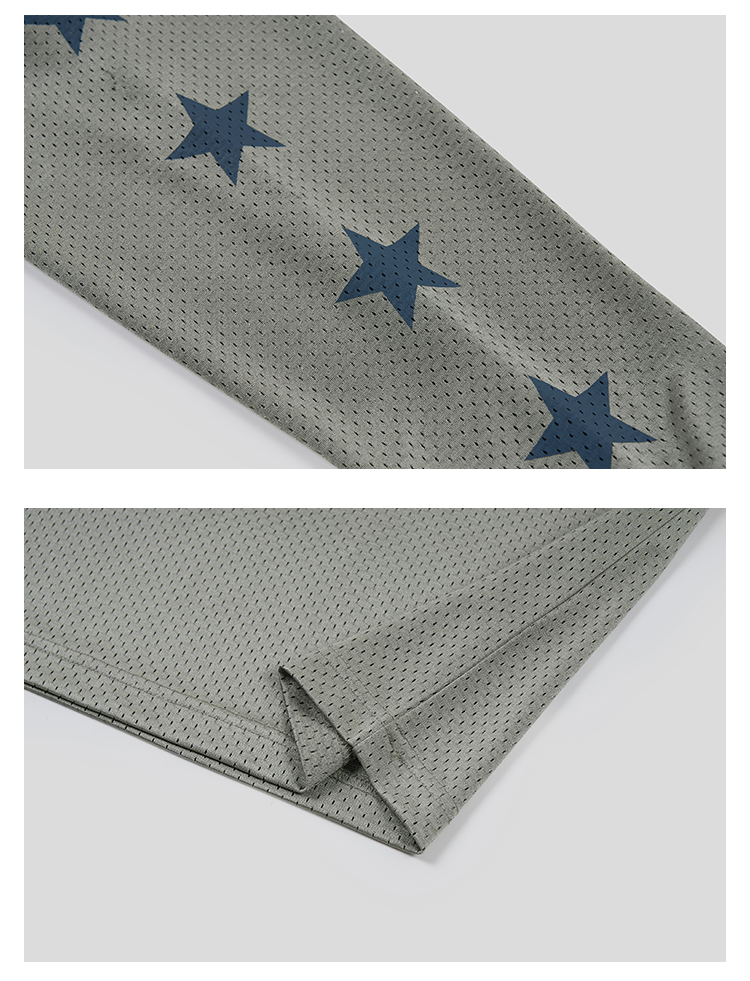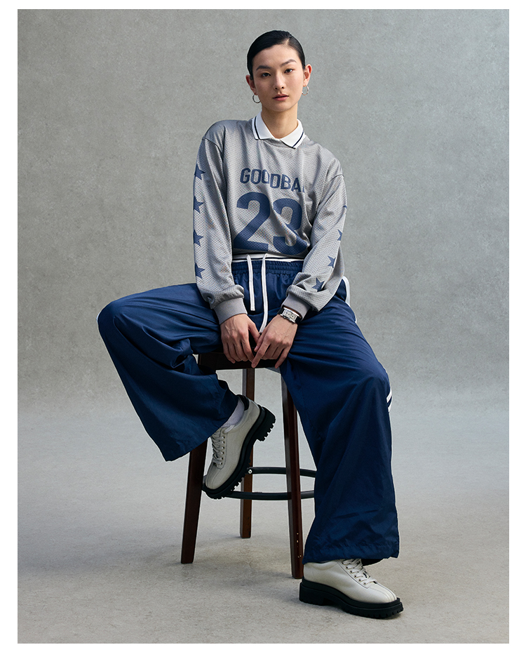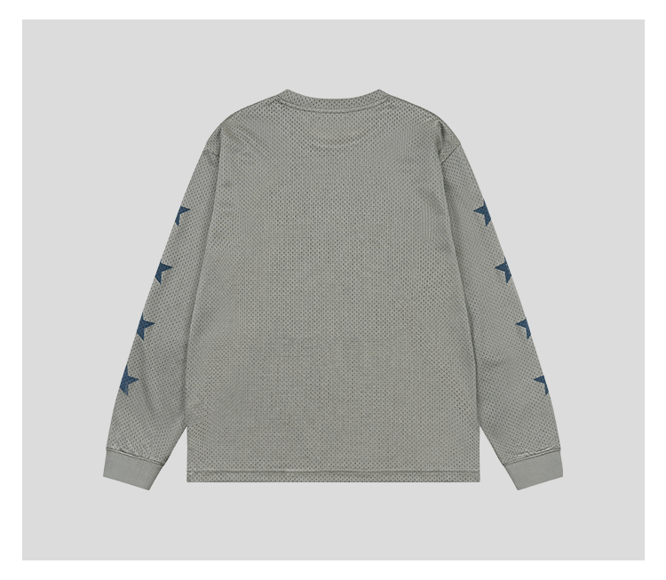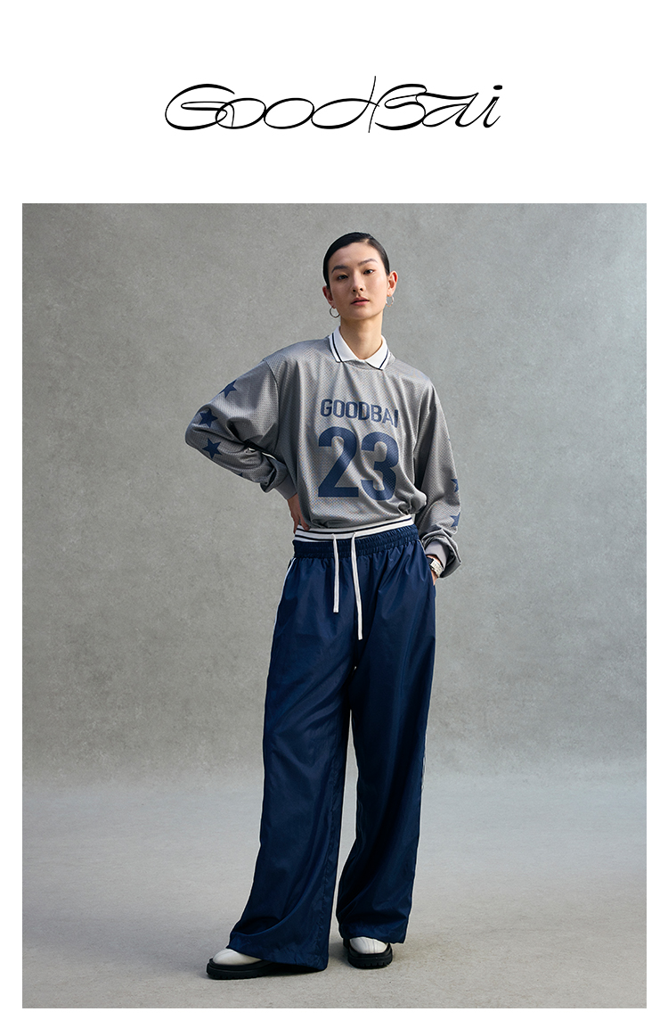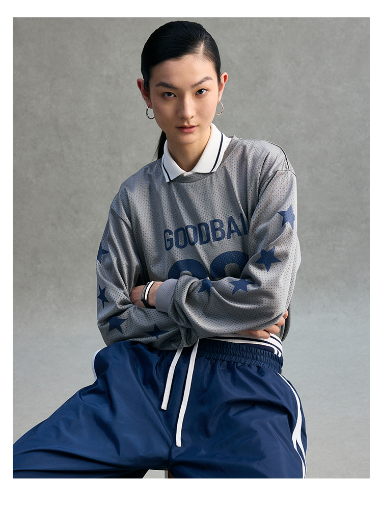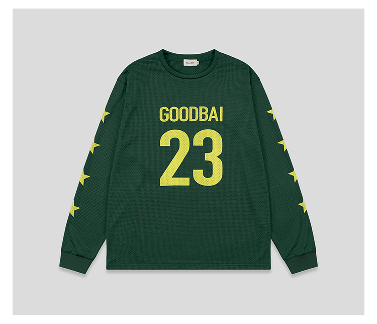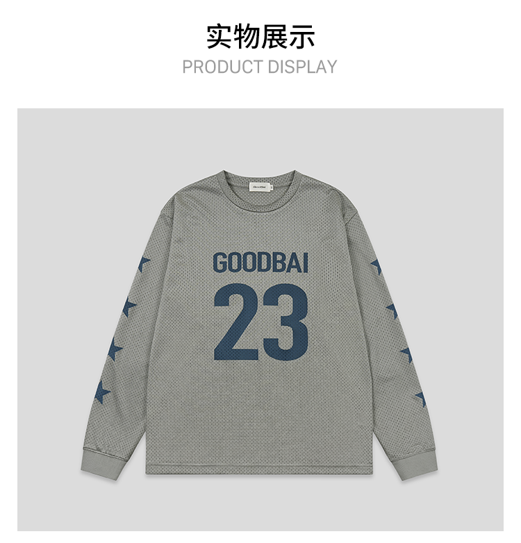 GOODBAI 23编号logo星星印花撞色圆领网面长袖卫衣