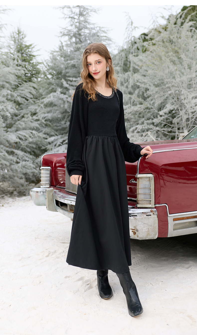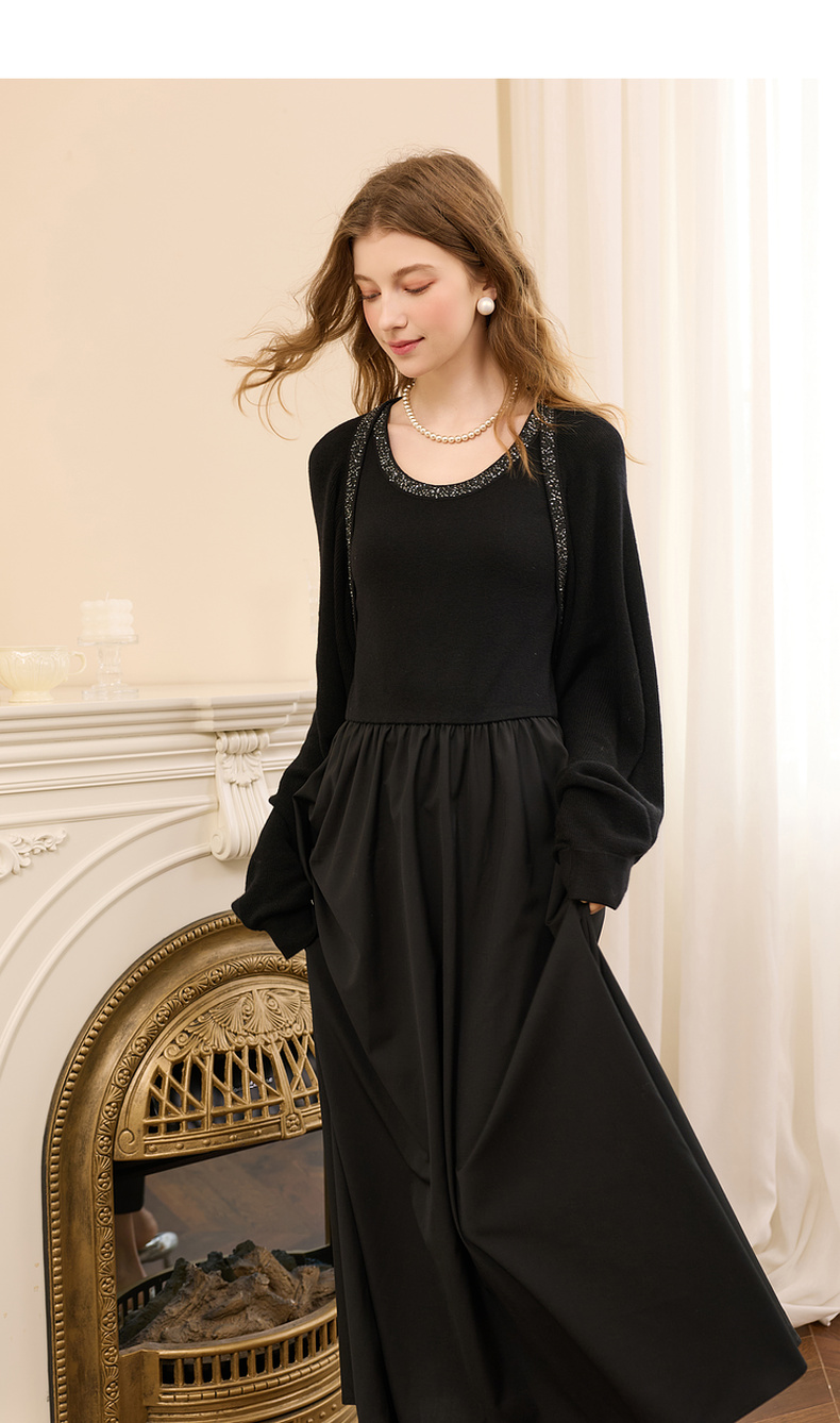 三彩2026春季新款毛衣套装毛衫裙长袖毛开衫两件套法式气质M