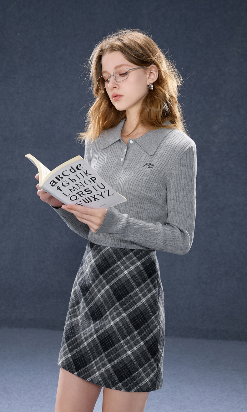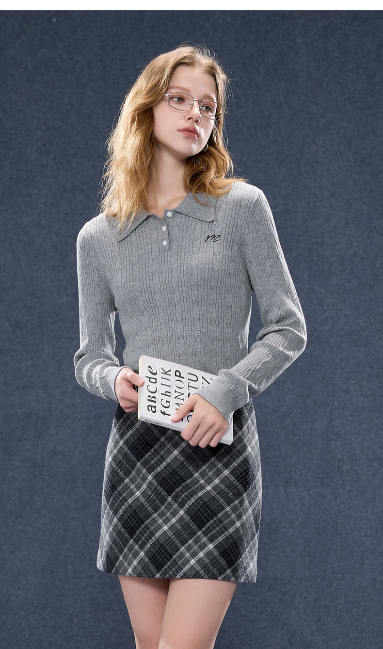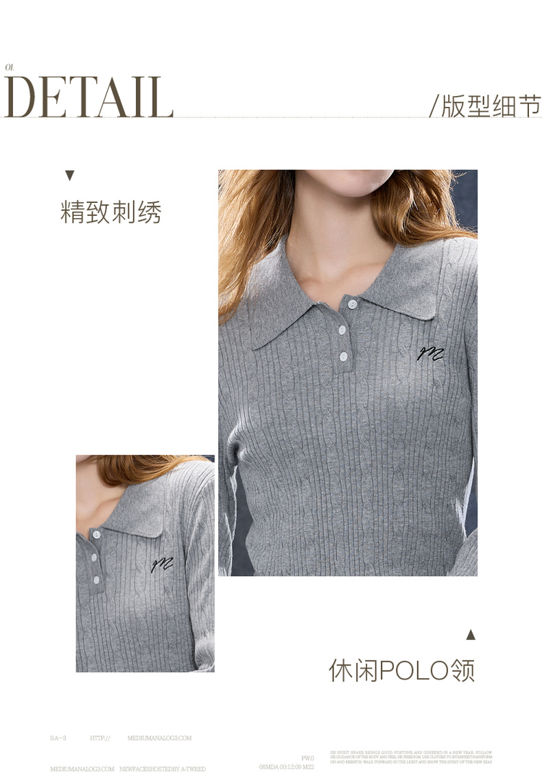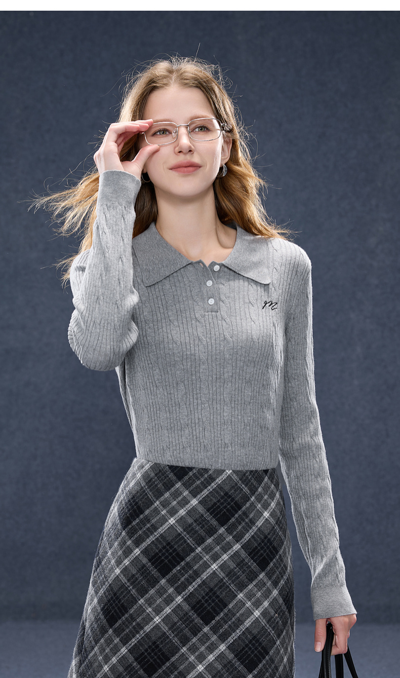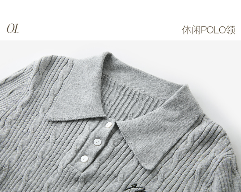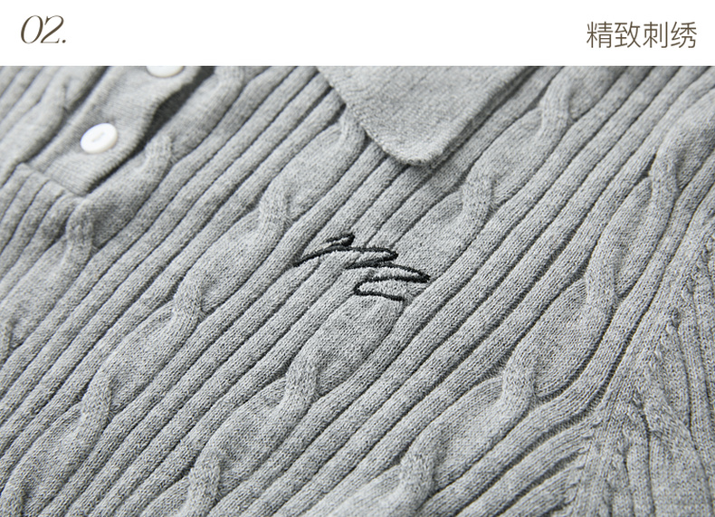 三彩2025秋季新款肌理绞花针织衫POLO领毛衫刺绣上衣长袖M