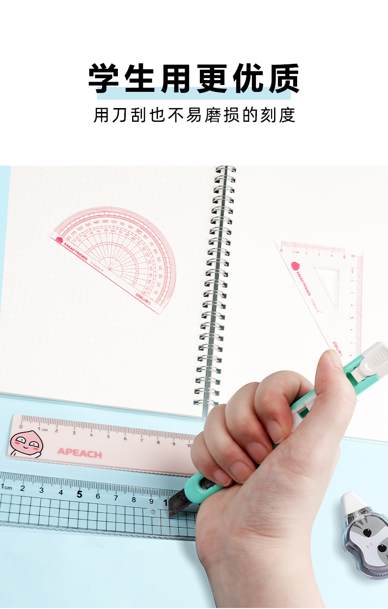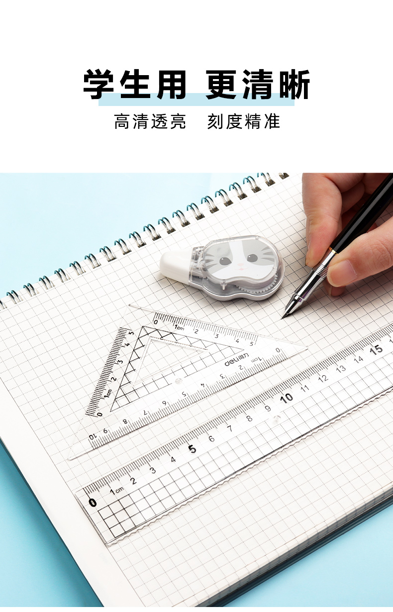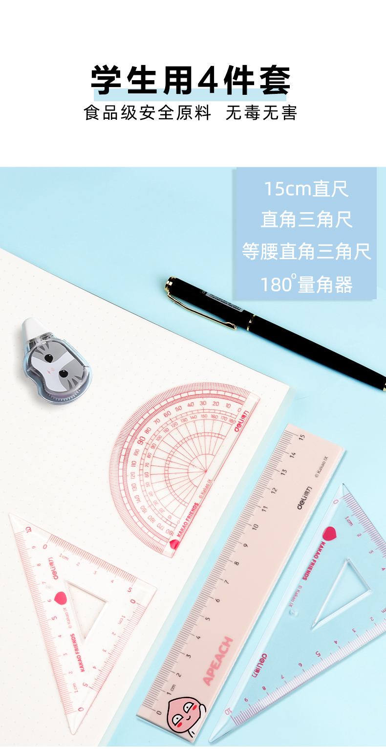 「9.9元包邮!四件套」得力套尺四件套小学生直尺三角尺可爱尺子透明多功能套装