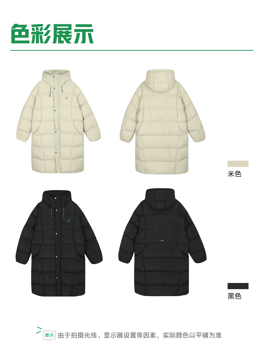 【品牌特惠】ACMEITEM爱棵米 户外长款连帽羽绒衣保暖防泼水吐司羽绒服男女GAF3110880G