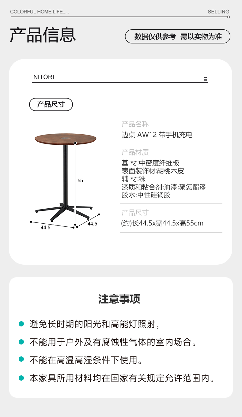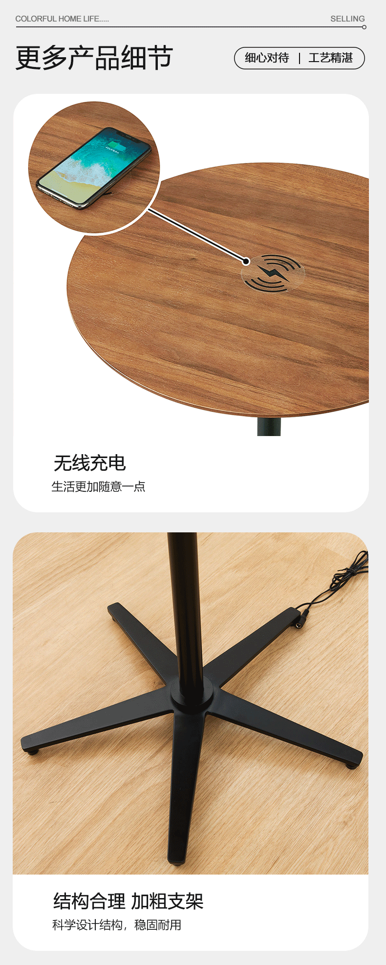 【家具】 多功能边桌 AW12 带手机充电 中棕色(需自行安装)