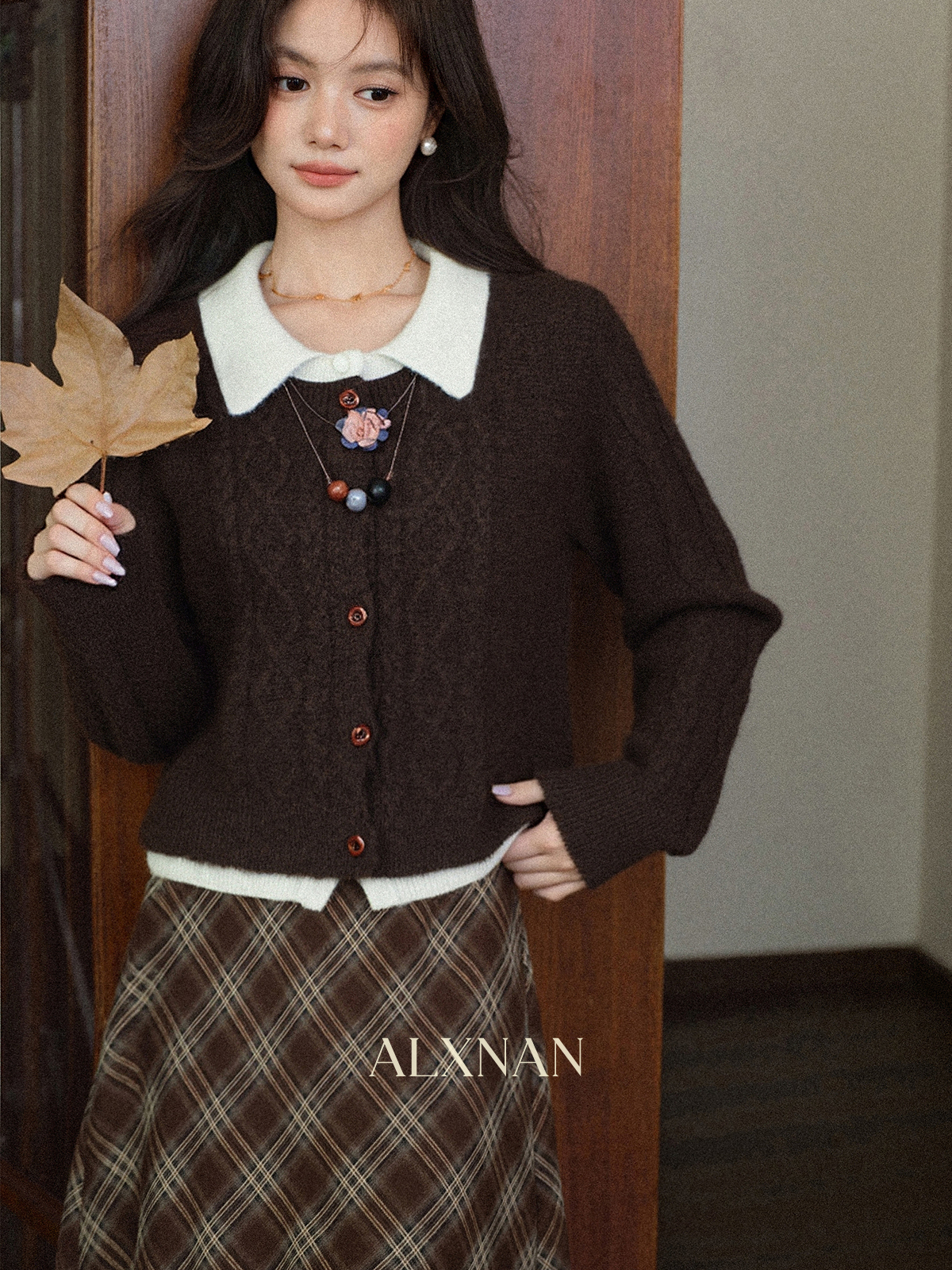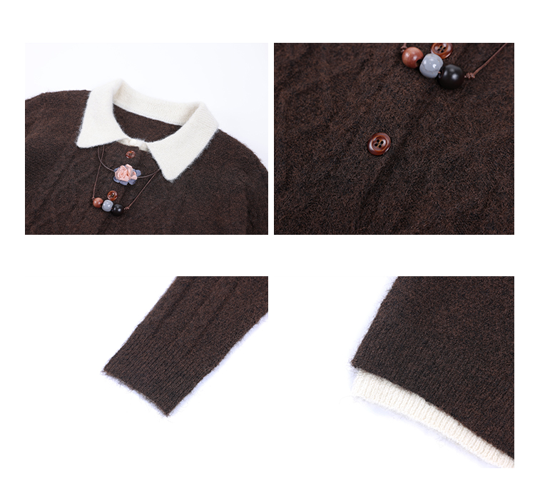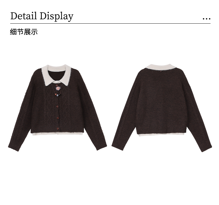 鹿向南 [秋季重现] 秋季新款韩系气质减龄通勤假两件咖色毛衣女DYL662199