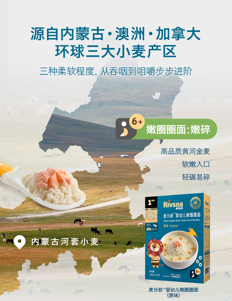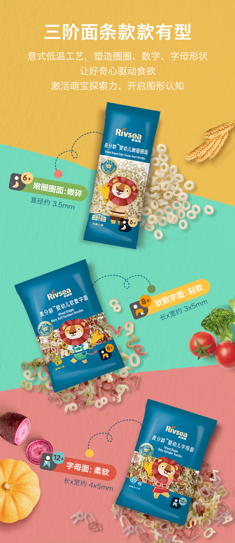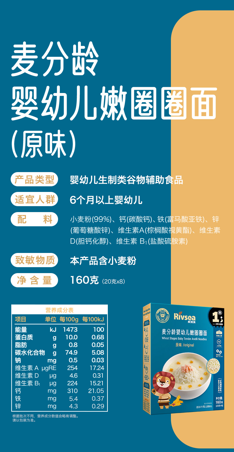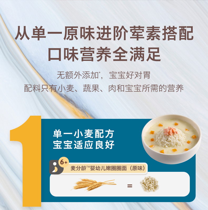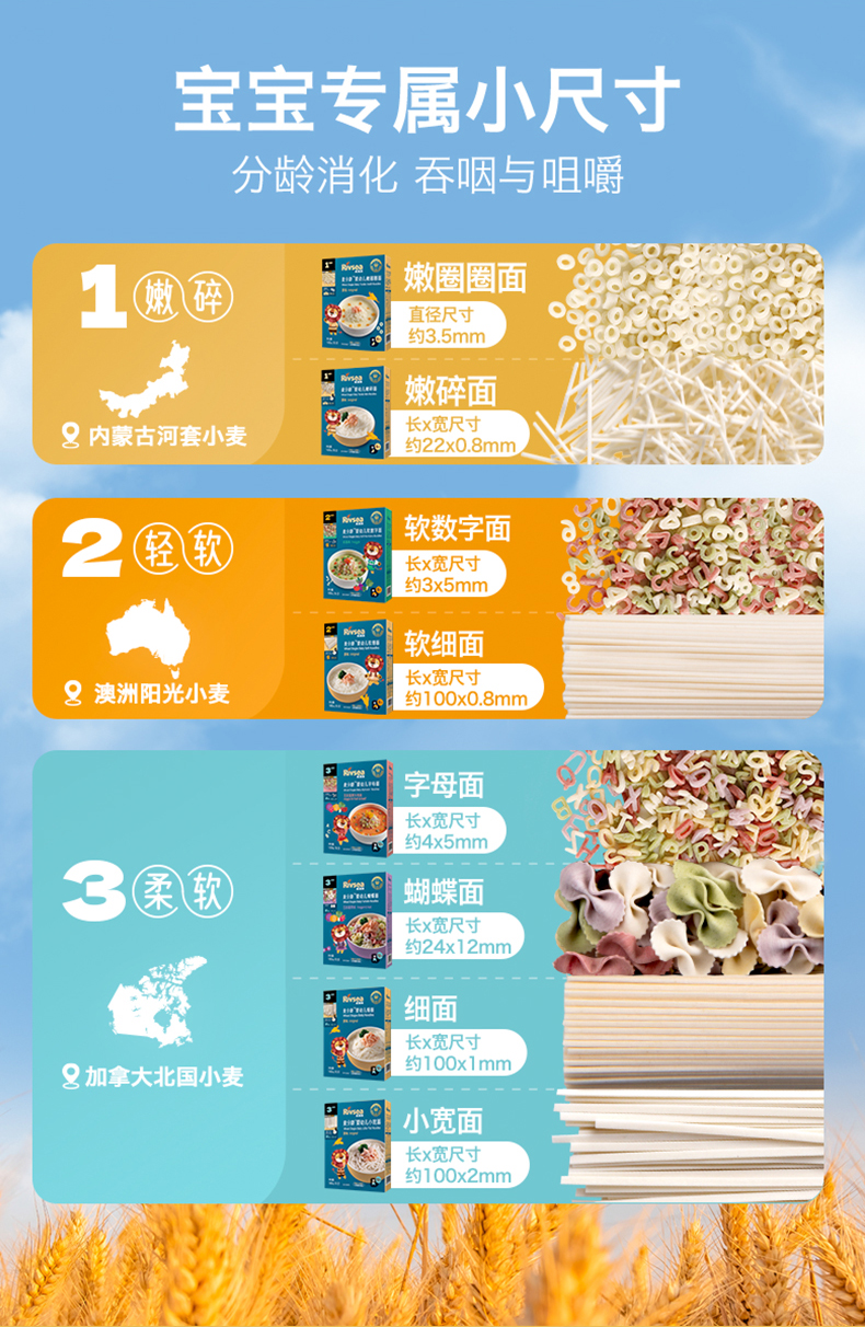 【满30退运费】【新品造型面】 6月龄 禾泱泱麦分龄婴幼儿面条 无添加盐儿童营养辅食面