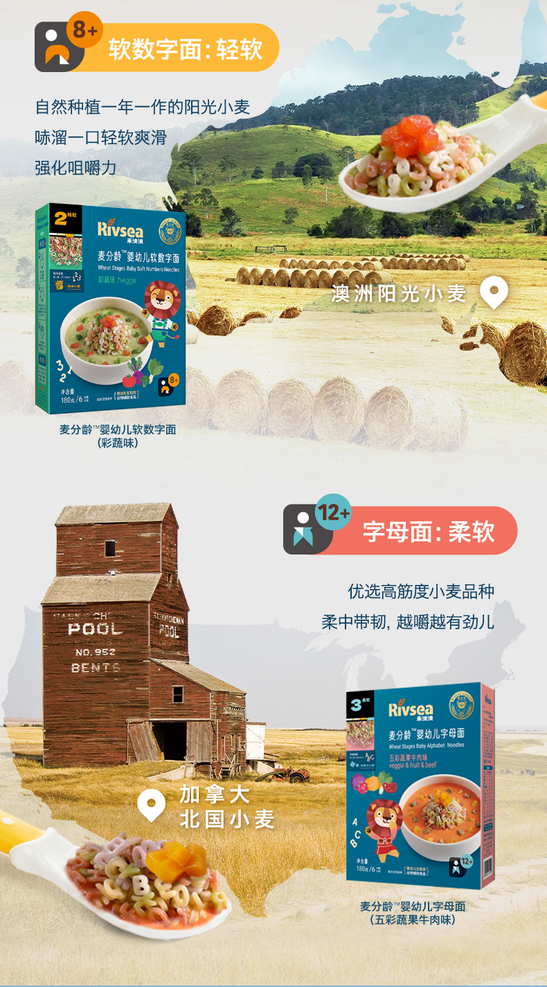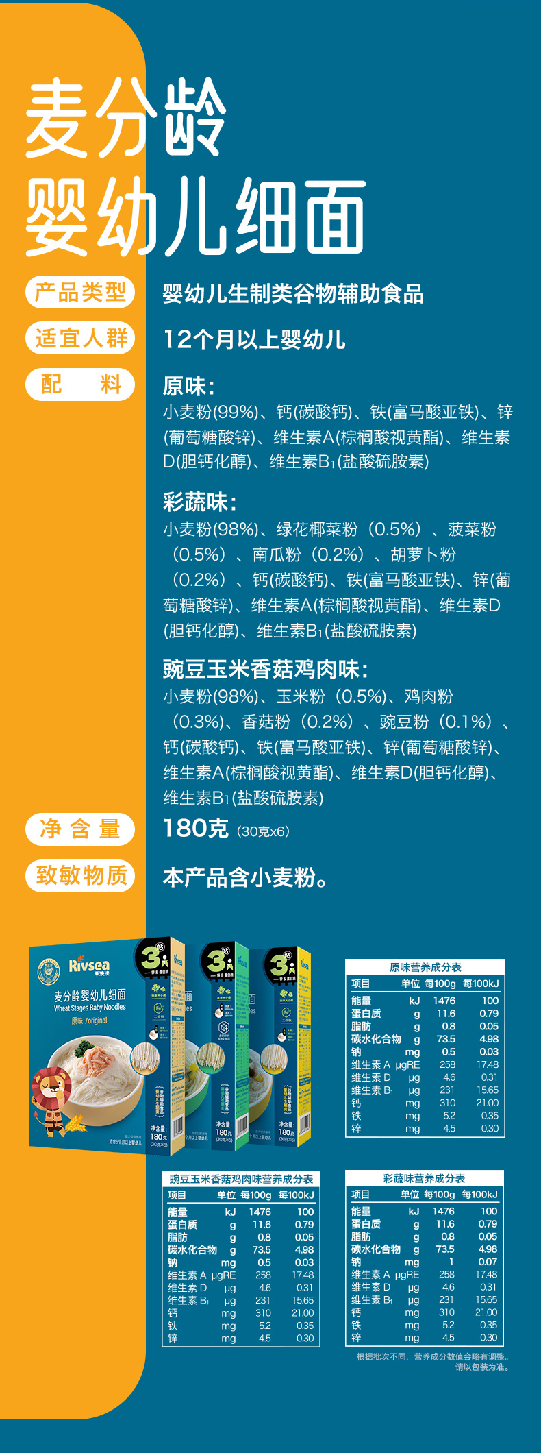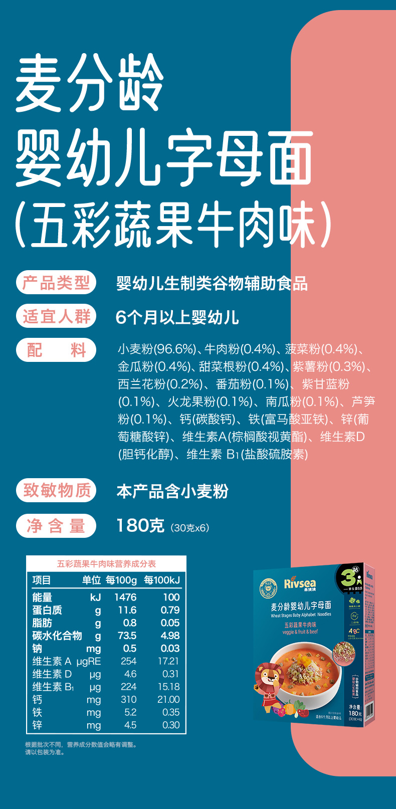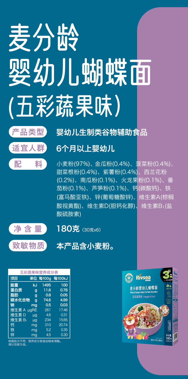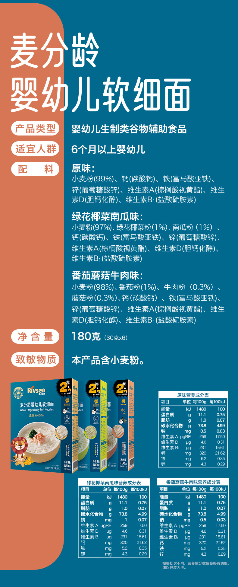 【满30退运费】【新品造型面】 6月龄 禾泱泱麦分龄婴幼儿面条 无添加盐儿童营养辅食面