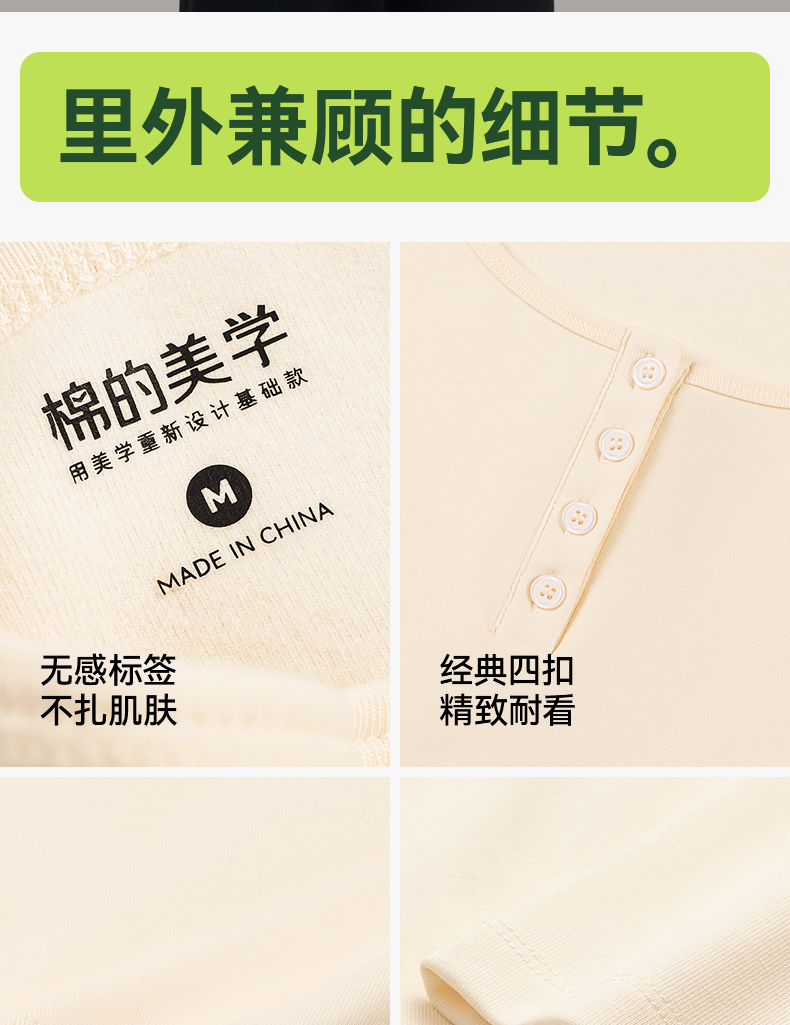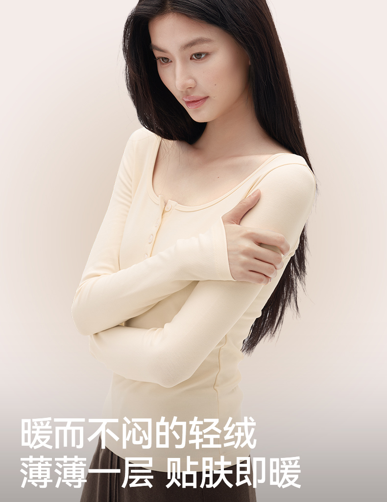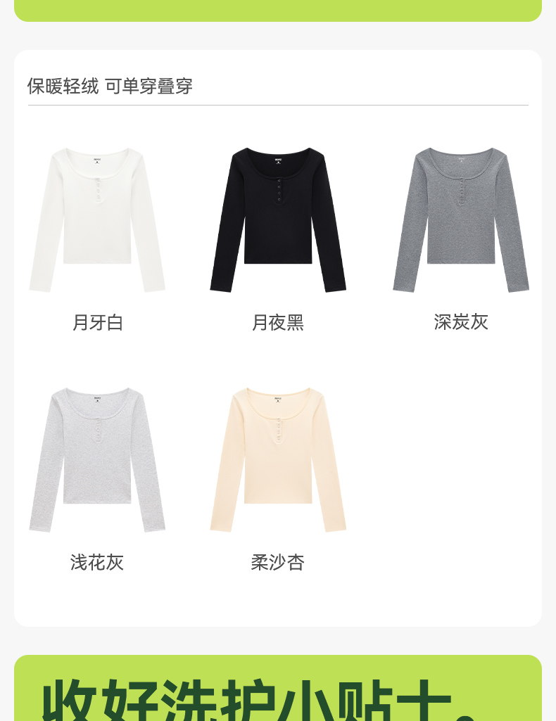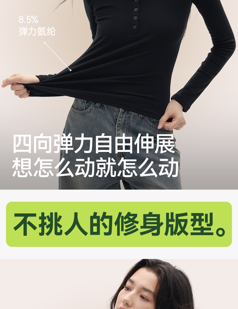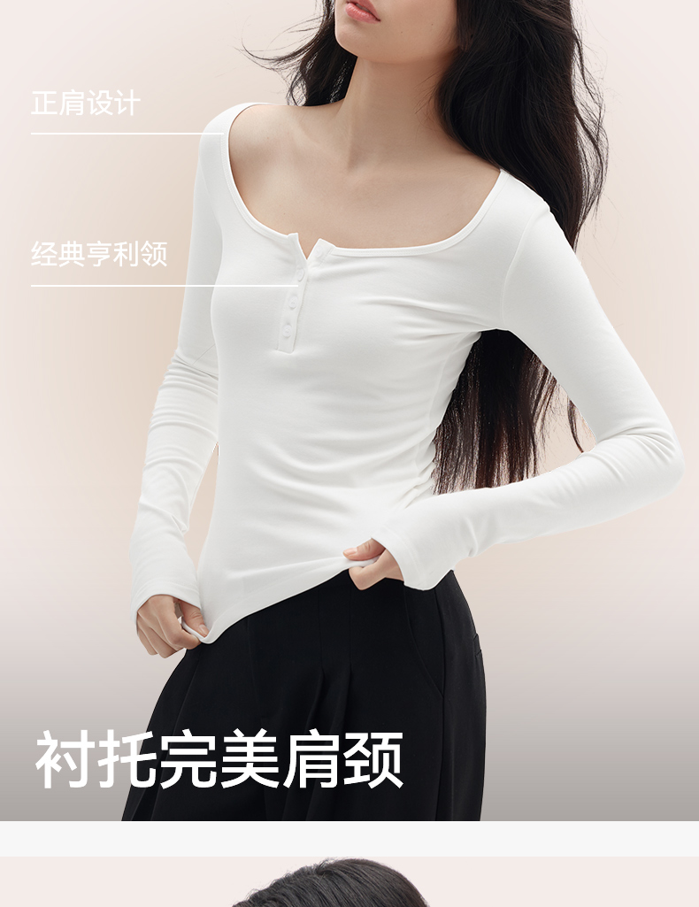 「棉的美学」辣妹纽扣亨利领长袖打底秋冬新款加绒气质百搭修身上衣