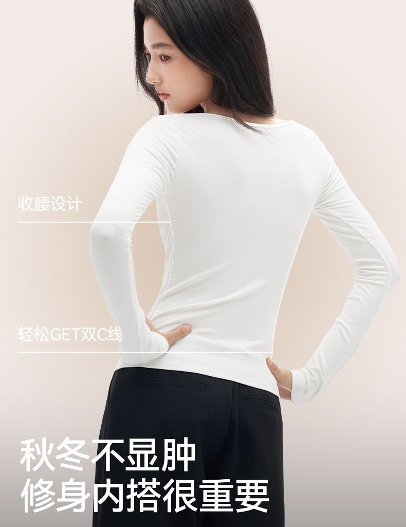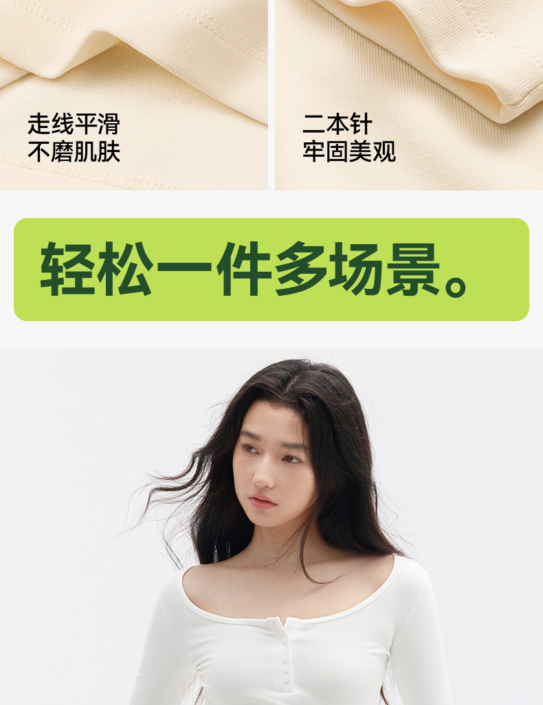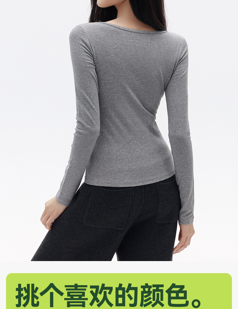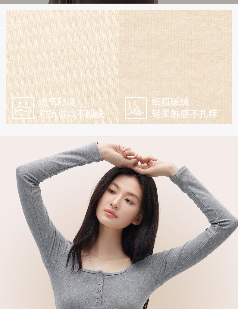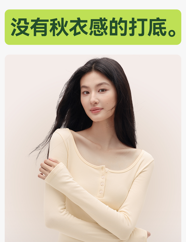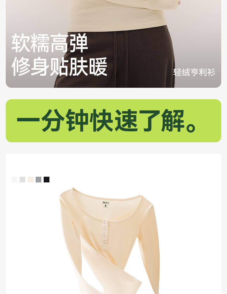 「棉的美学」辣妹纽扣亨利领长袖打底秋冬新款加绒气质百搭修身上衣