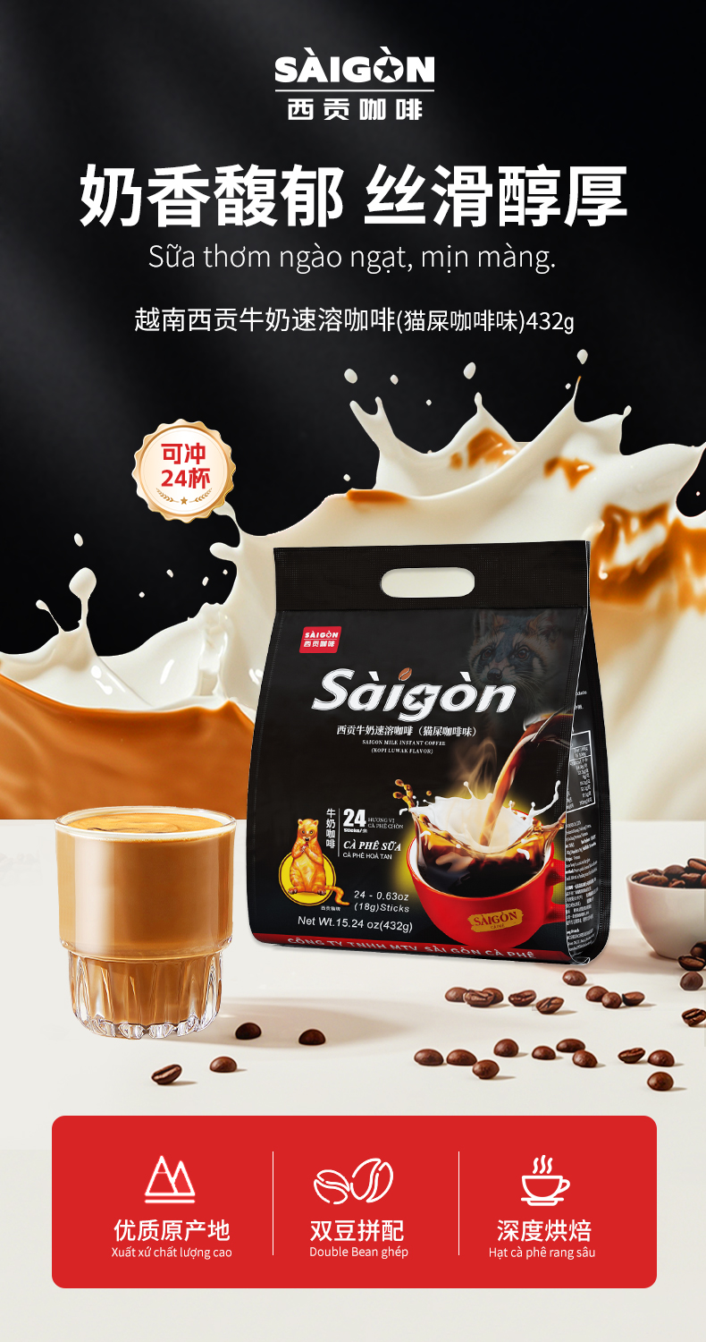 【牛奶咖啡】猫屎咖啡味牛奶速溶咖啡432克(18gx24条)升级