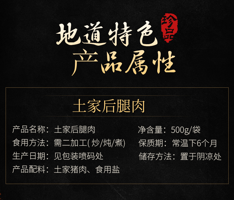 【晓姚】黑猪腊后腿 500g 中国非物质文化遗产食品