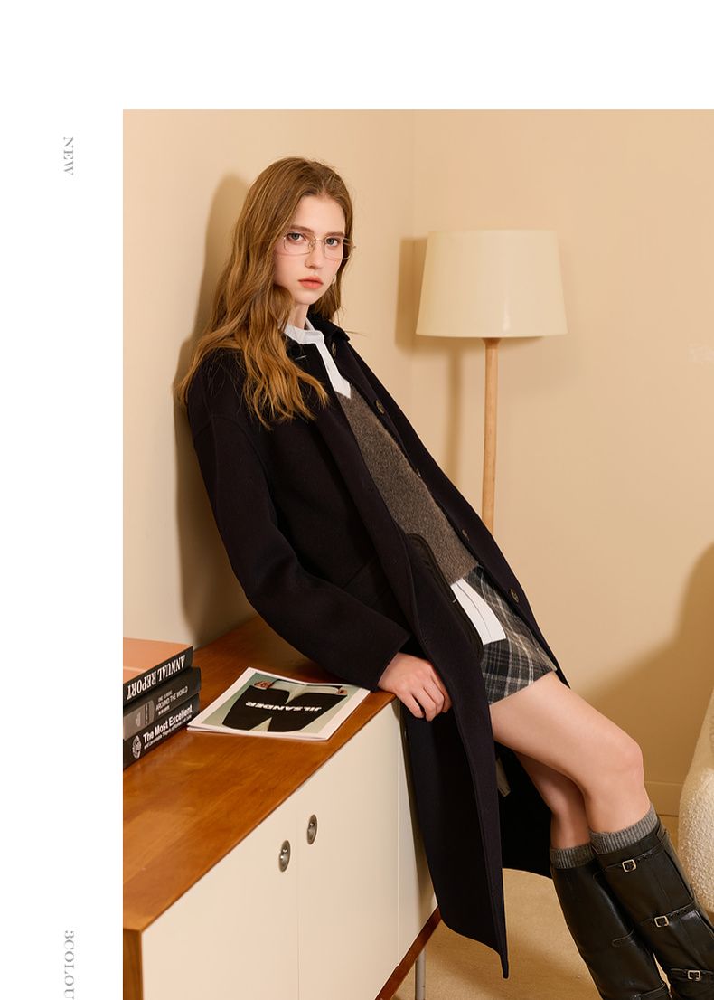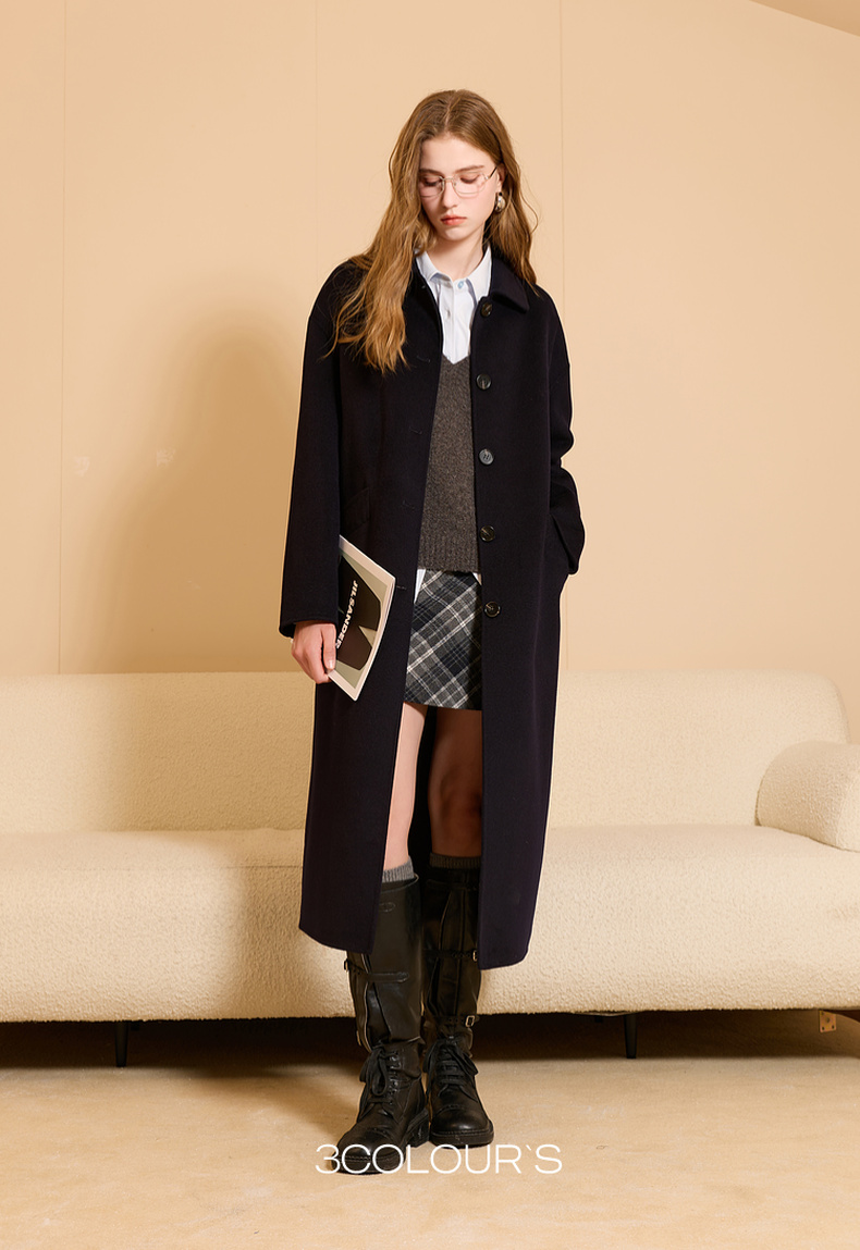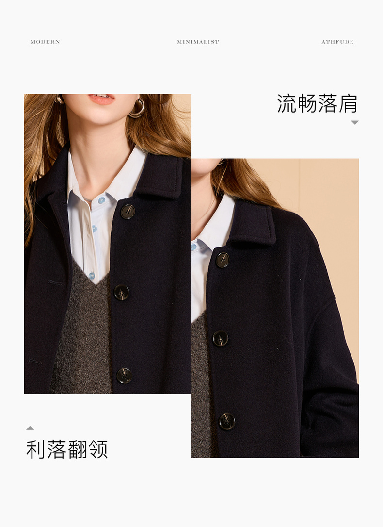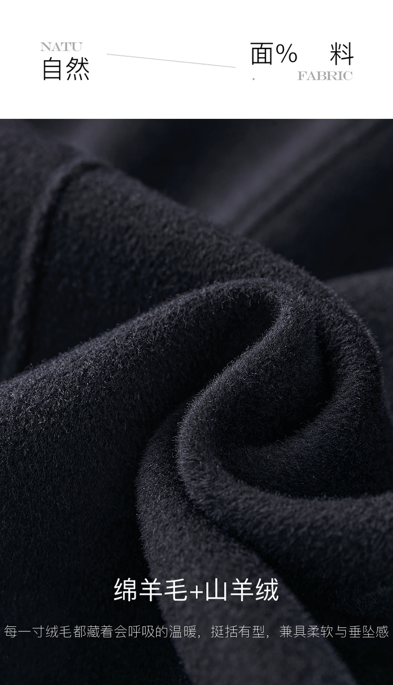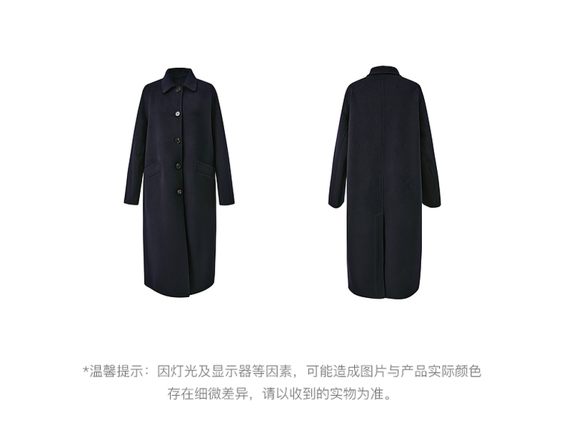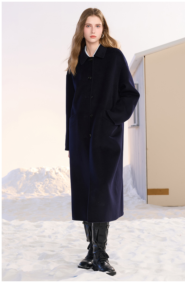 三彩2025冬季新款绵羊毛大衣翻领双面呢长款直筒毛呢外套S
