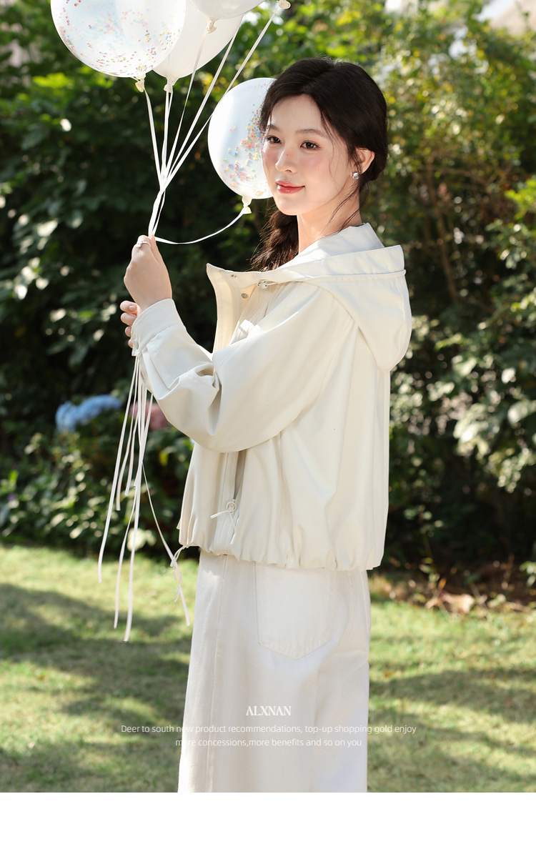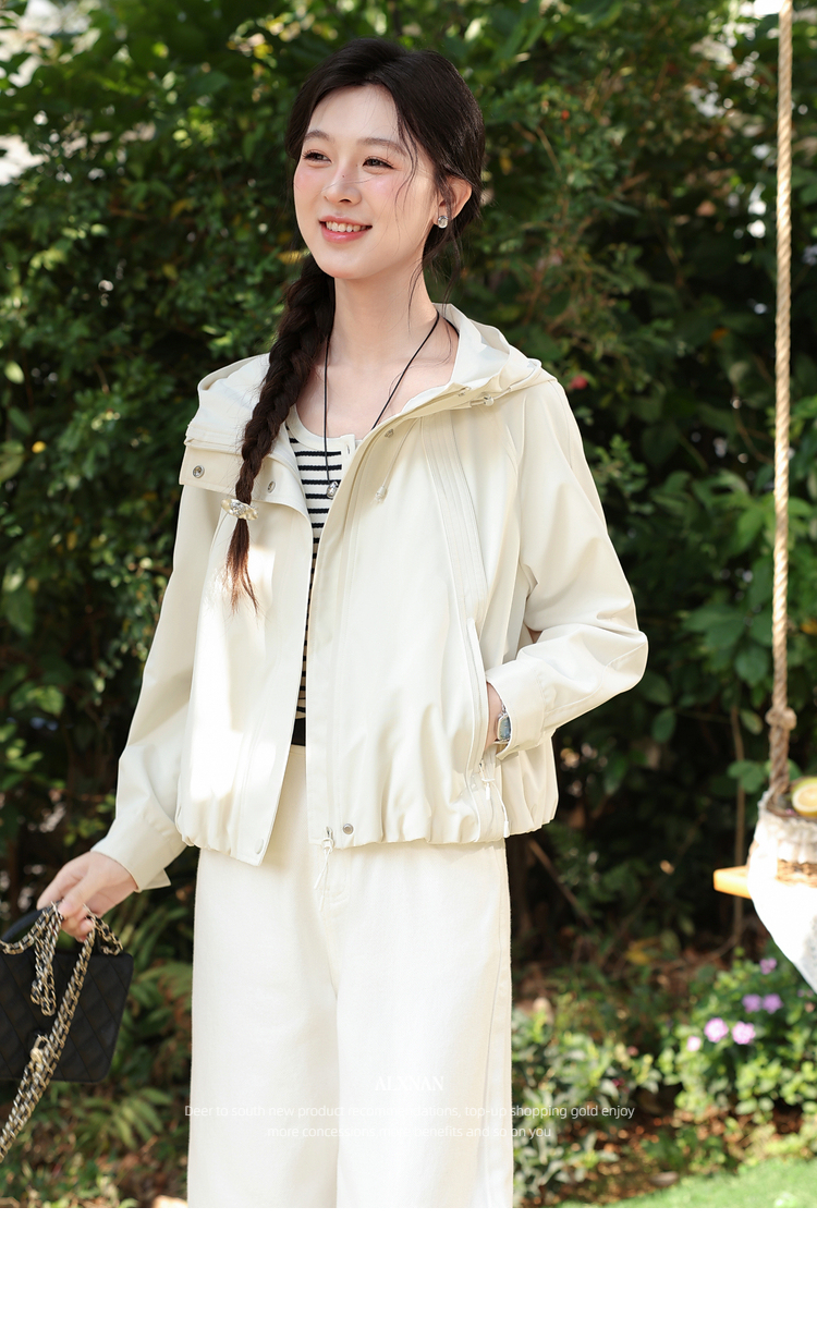 鹿向南「晴日漫叙」杏色连帽短款外套女春季新款独特休闲百搭上衣