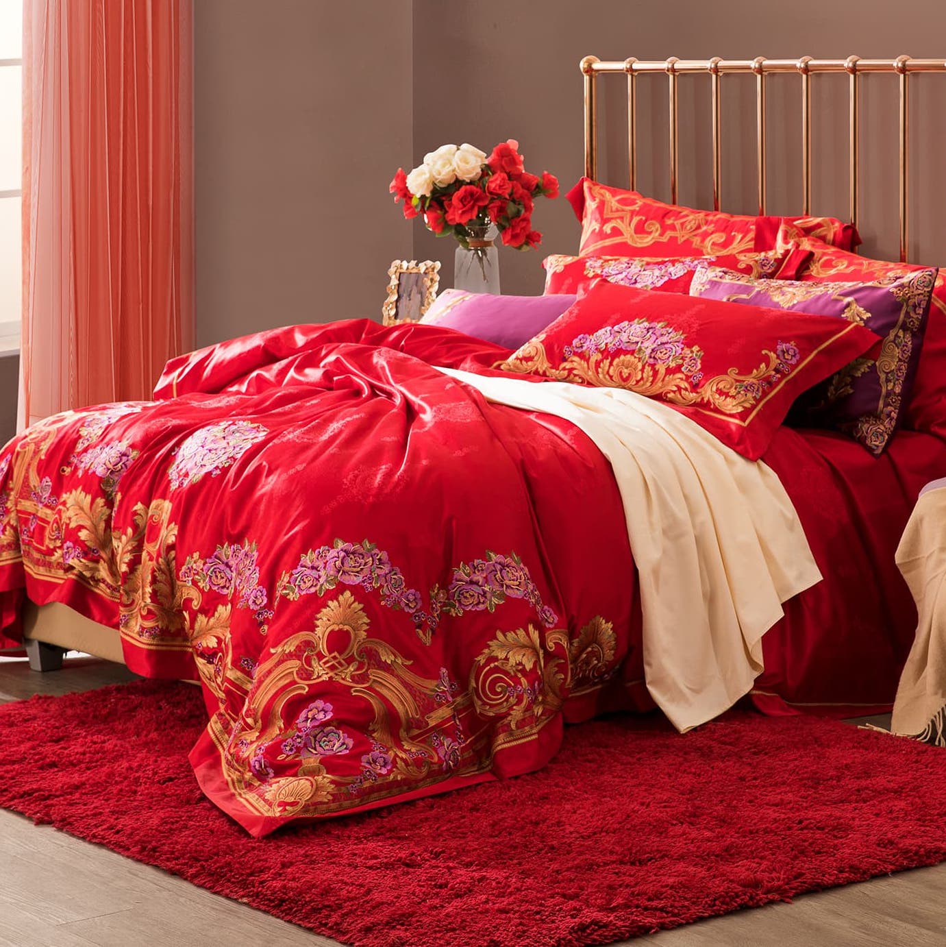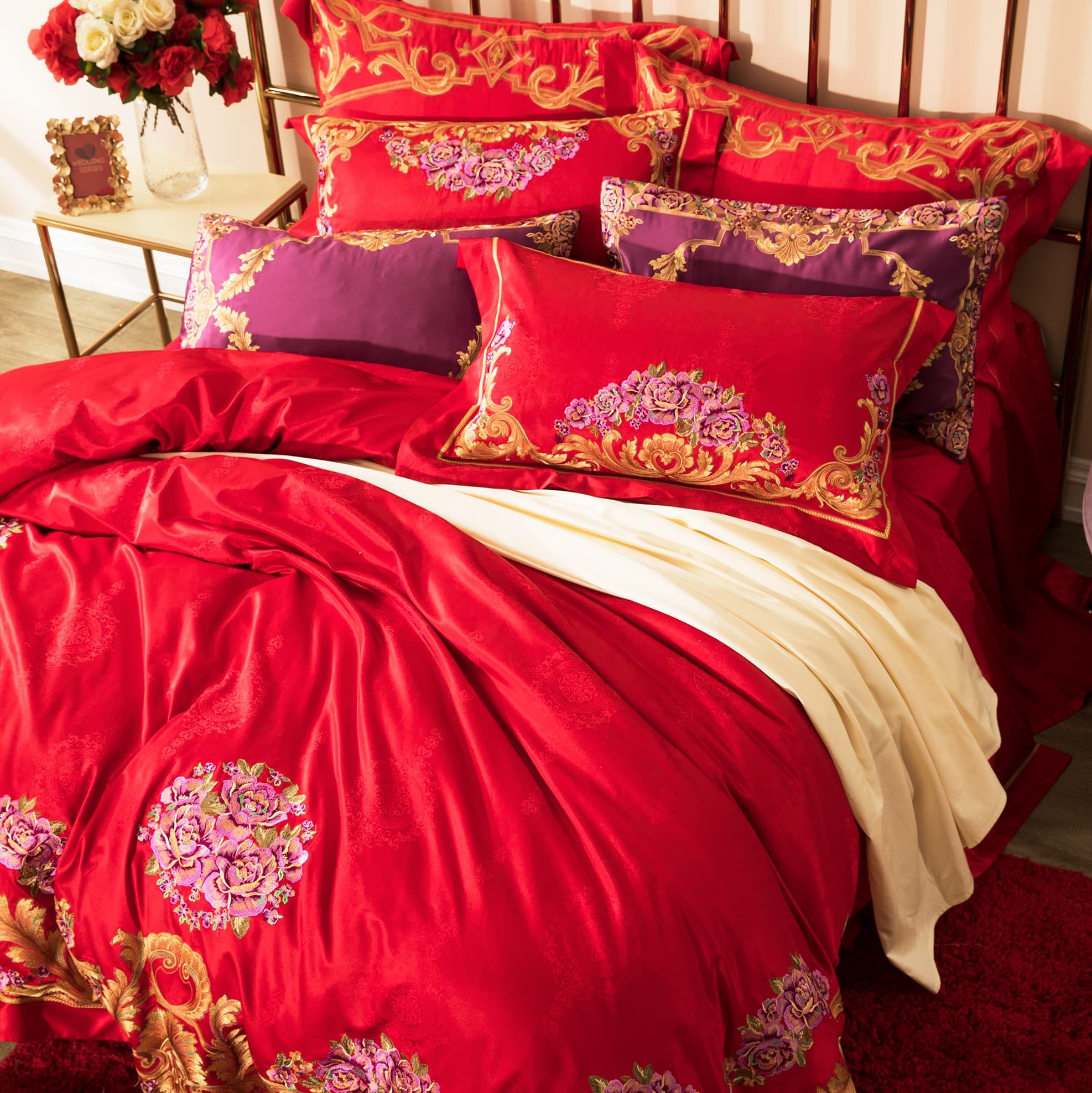 恐龙家纺XX 【芳馨唯爱】涤棉大提花婚庆九件套(线下专柜款)