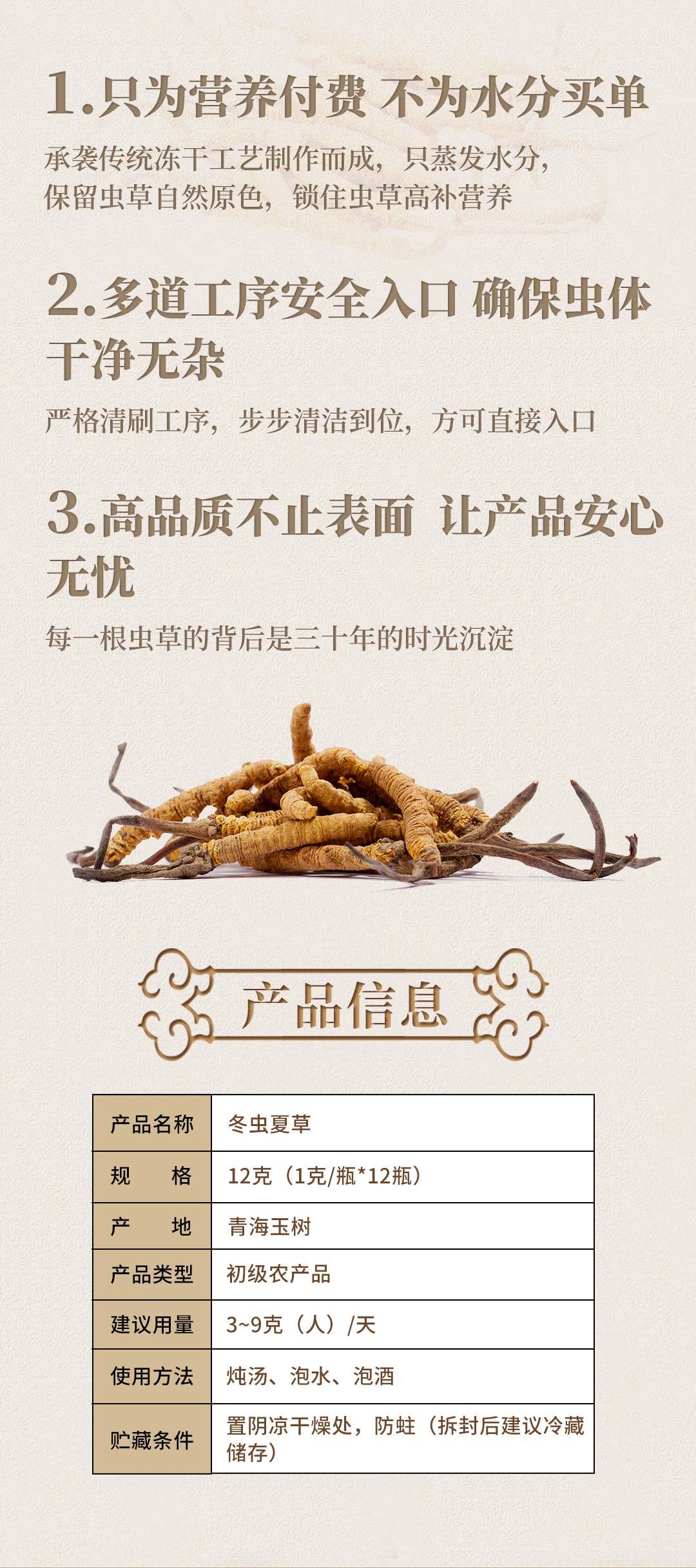 【P】北京同仁堂 锁鲜冬虫夏草 (干虫草)(3000头*10g)